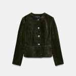 کت jacket 100% چرم، یقه دوچرخهای، با آستینهای بلند. پایین جکت کلوش است و بسته شدن آن از جلو با دکمه انجام میشود.