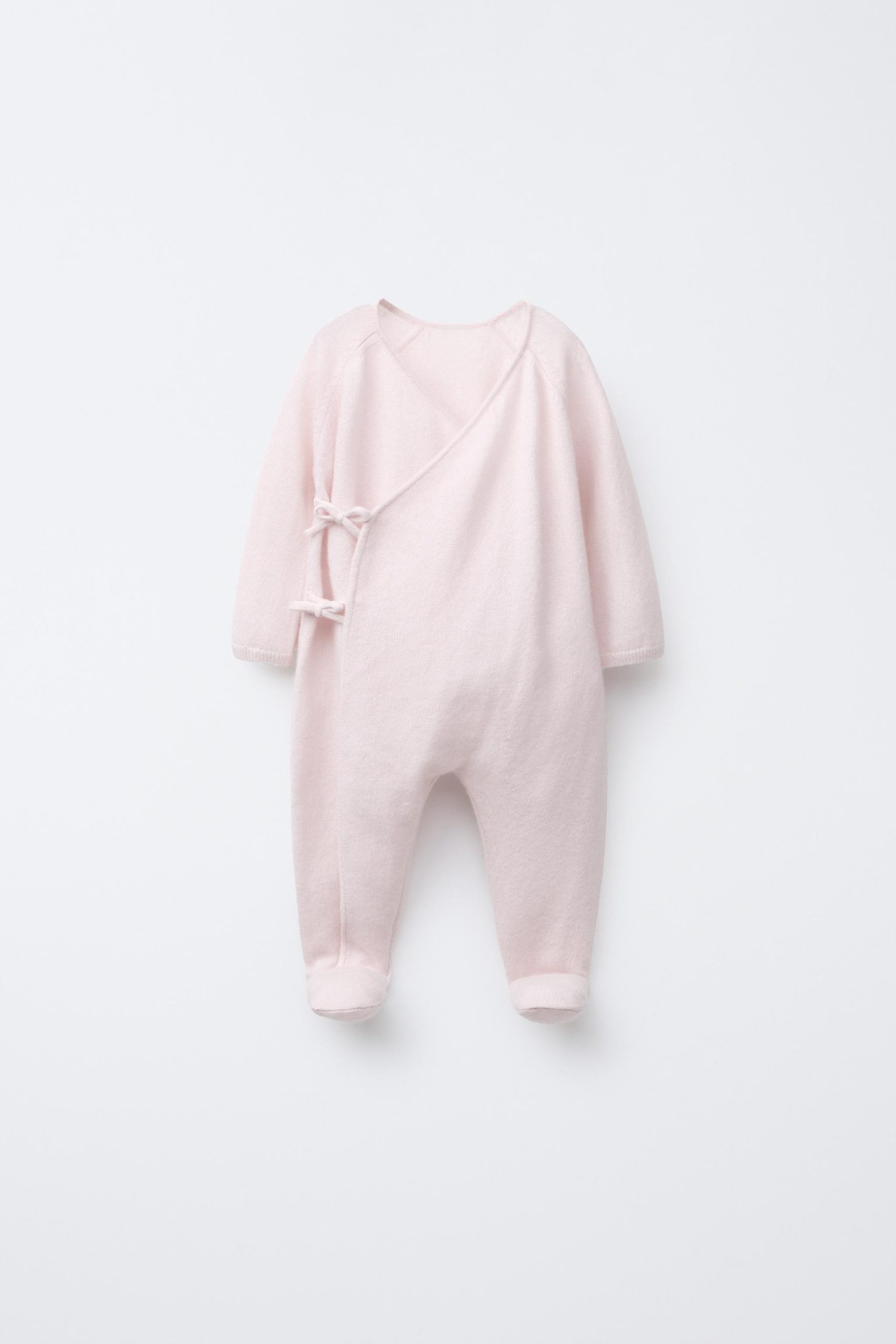 تولم کشمیری یقه V با آستین بلند از برند زارا (05536592)جنس: 100% کشمیری, رنگ: صورتی, سایز: 0-1 (56cm)