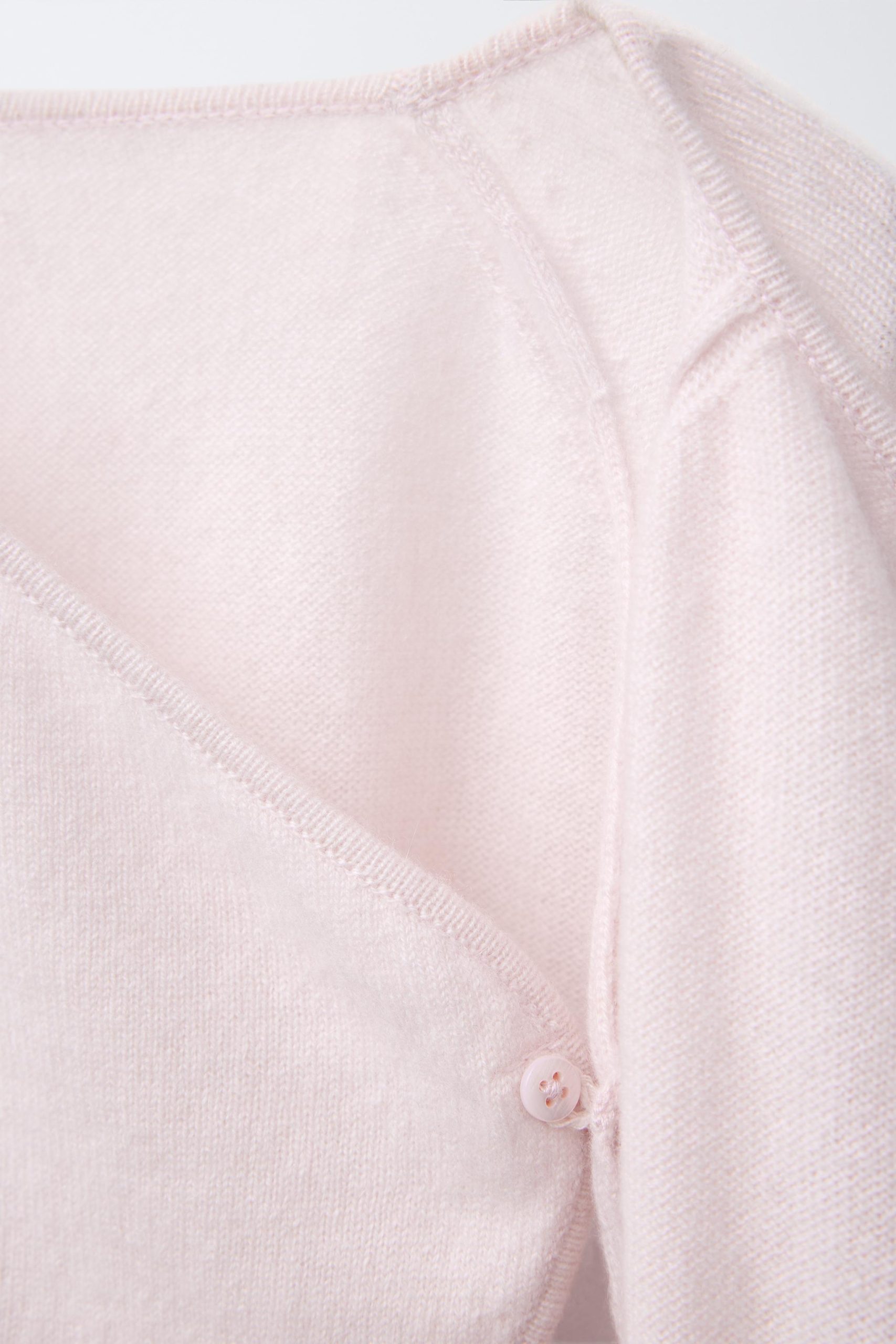 تولم کشمیری یقه V با آستین بلند از برند زارا (05536592)جنس: 100% کشمیری, رنگ: صورتی, سایز: 3-6(68cm)