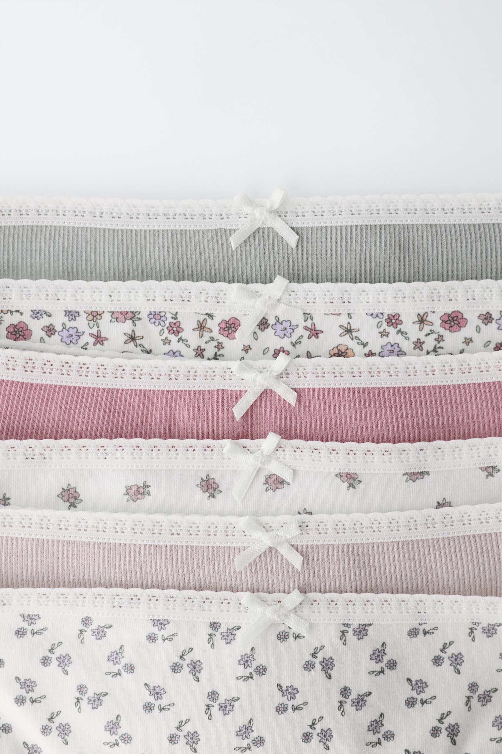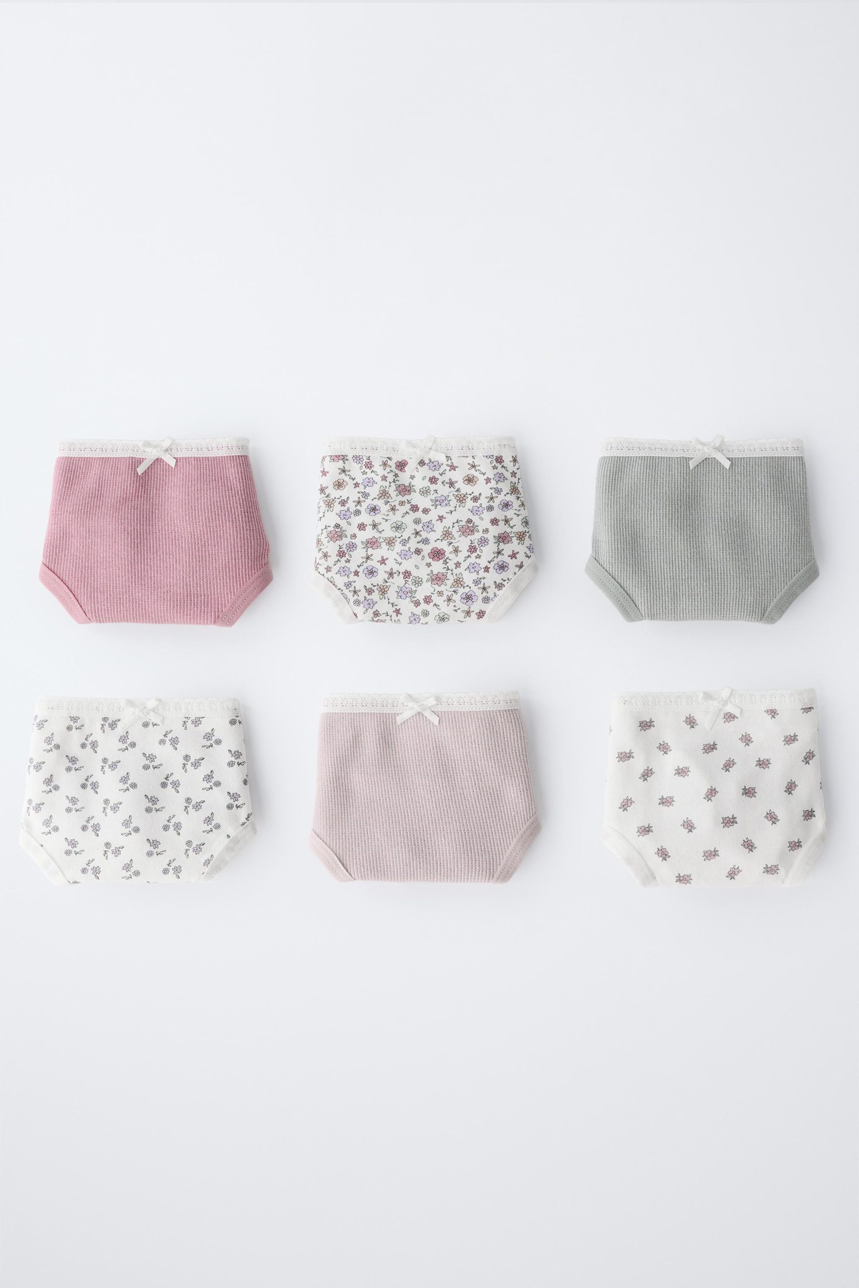 بسته شش‌تایی شورت با کمر الاستیک و تزئینات پاپیونی در جلو.