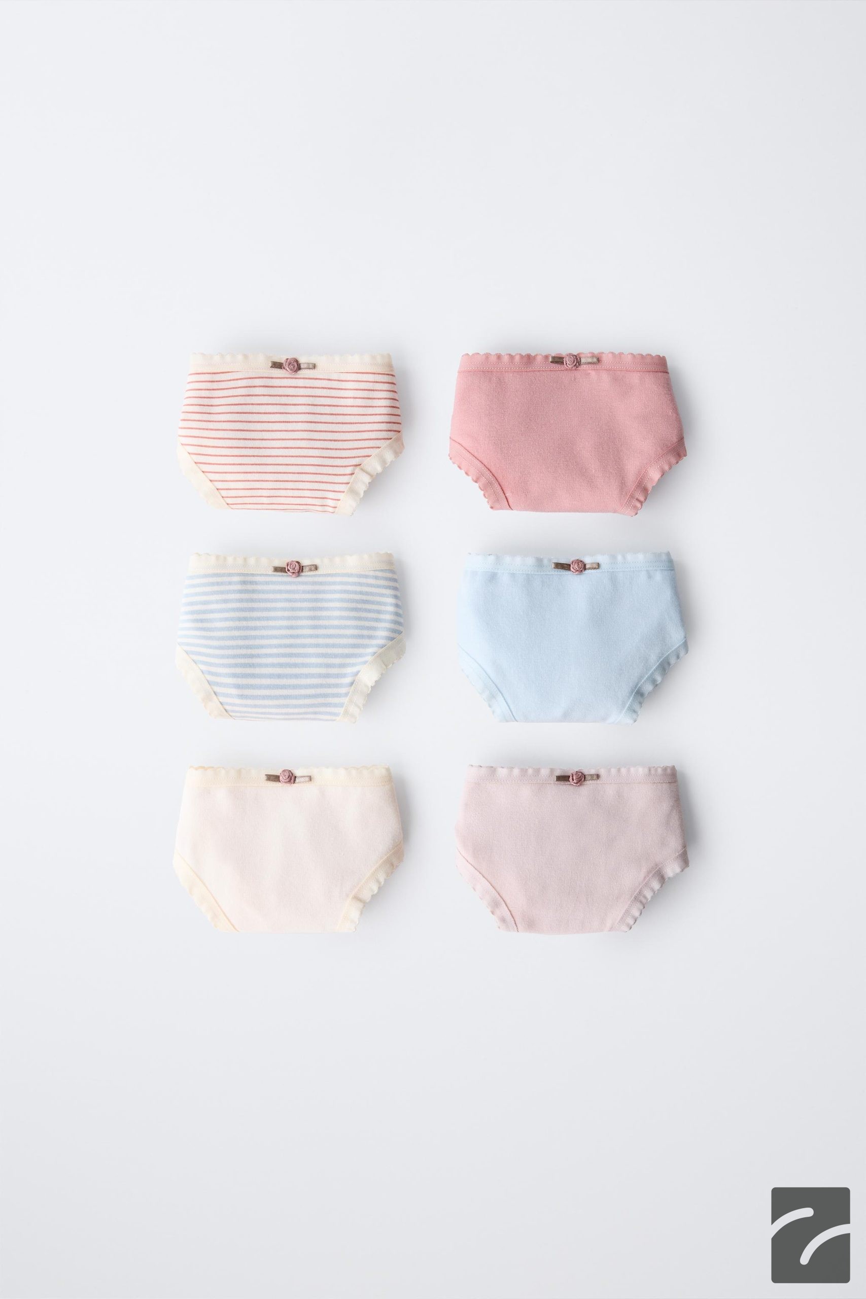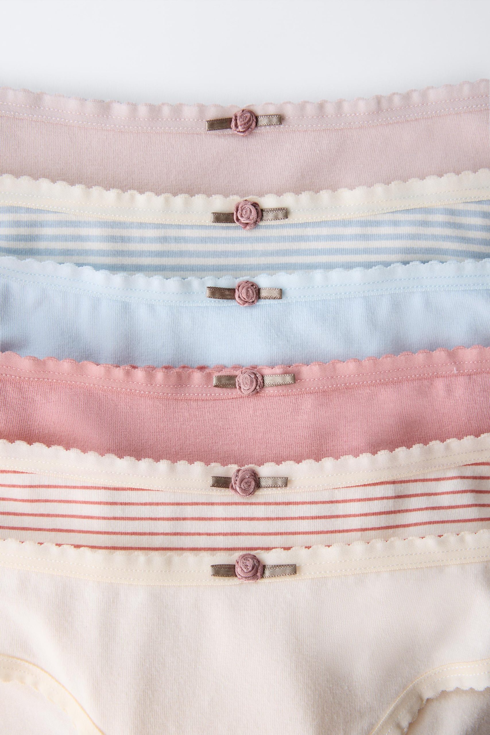 - Elastik belli altı adet külotlu don paketi. Ön kısımda çiçek aplikeli.