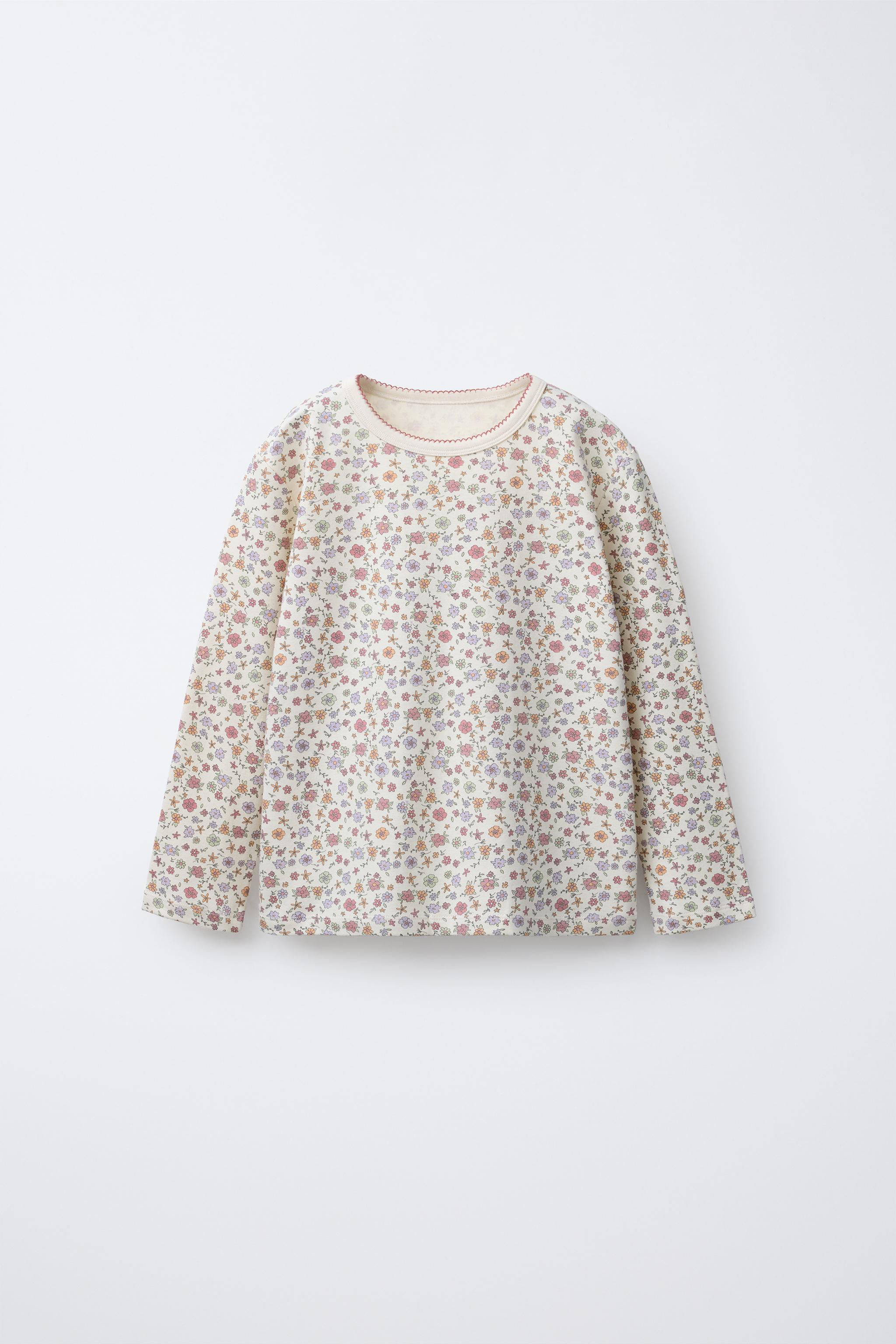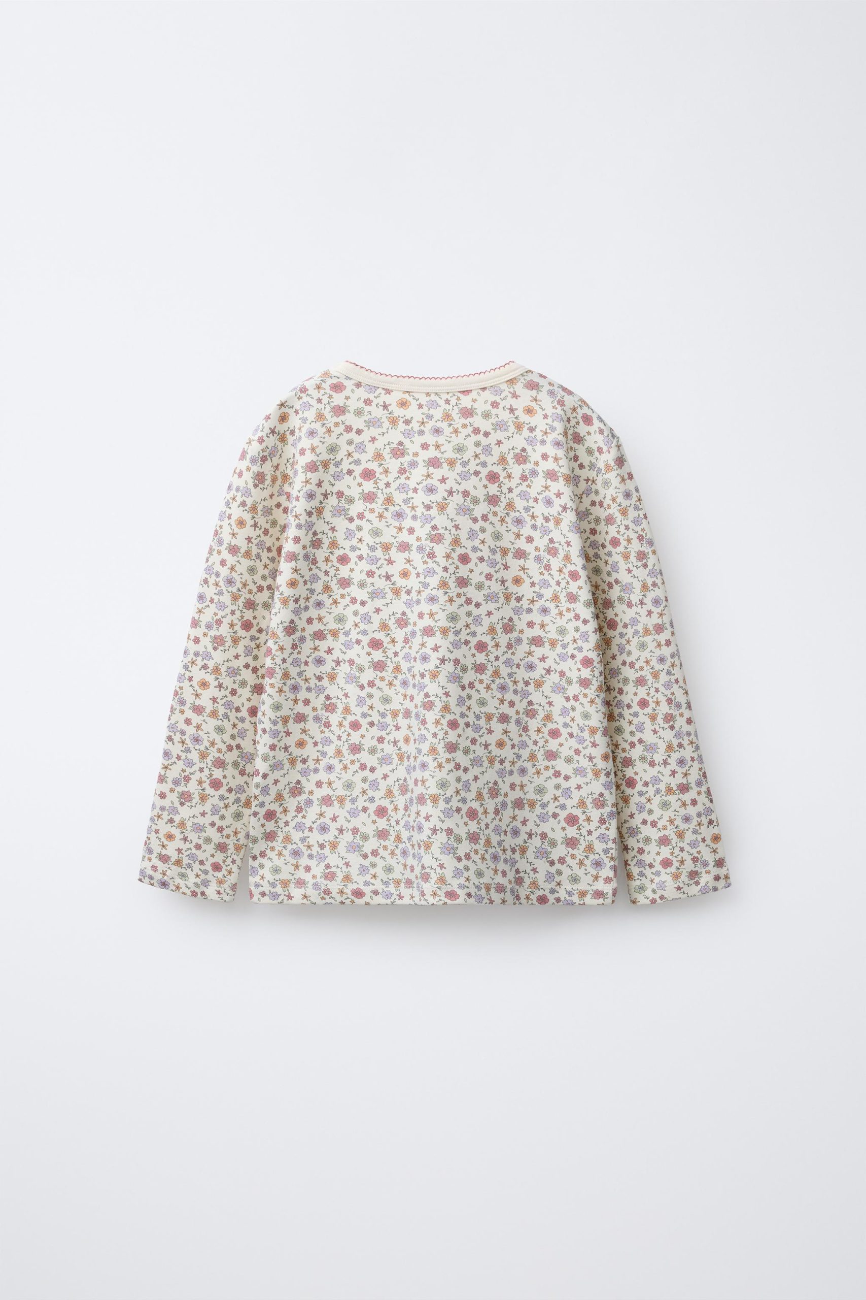 İki parçalı pijama takımı. Bisiklet yaka ve uzun kollu pijama üstü. Elastik belli pantolon. Çiçek desenli.