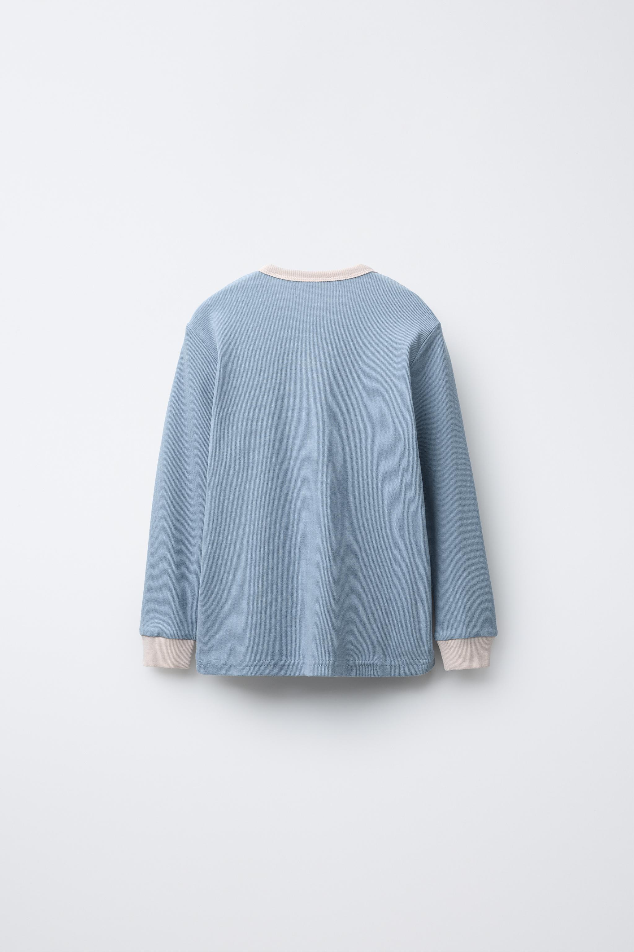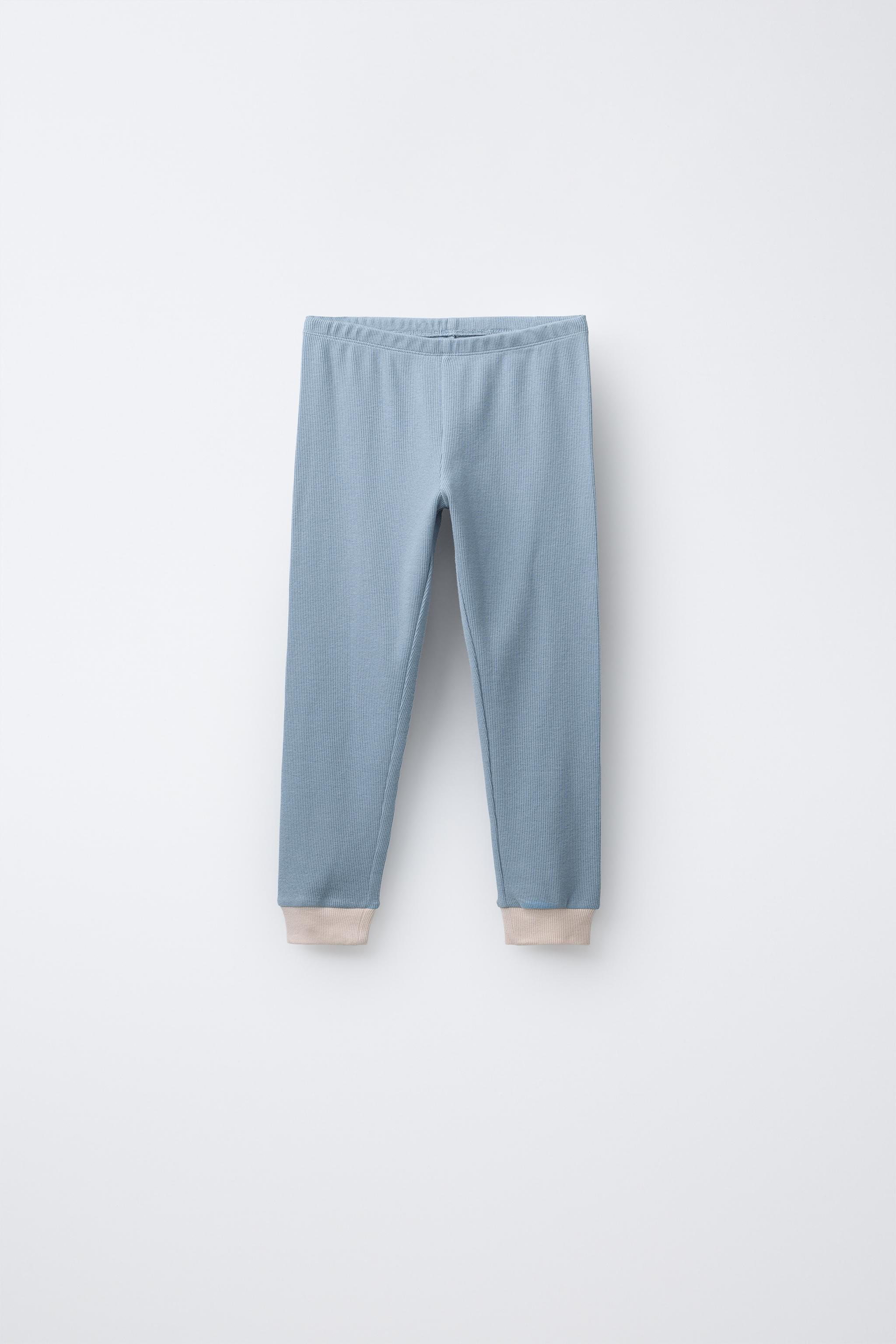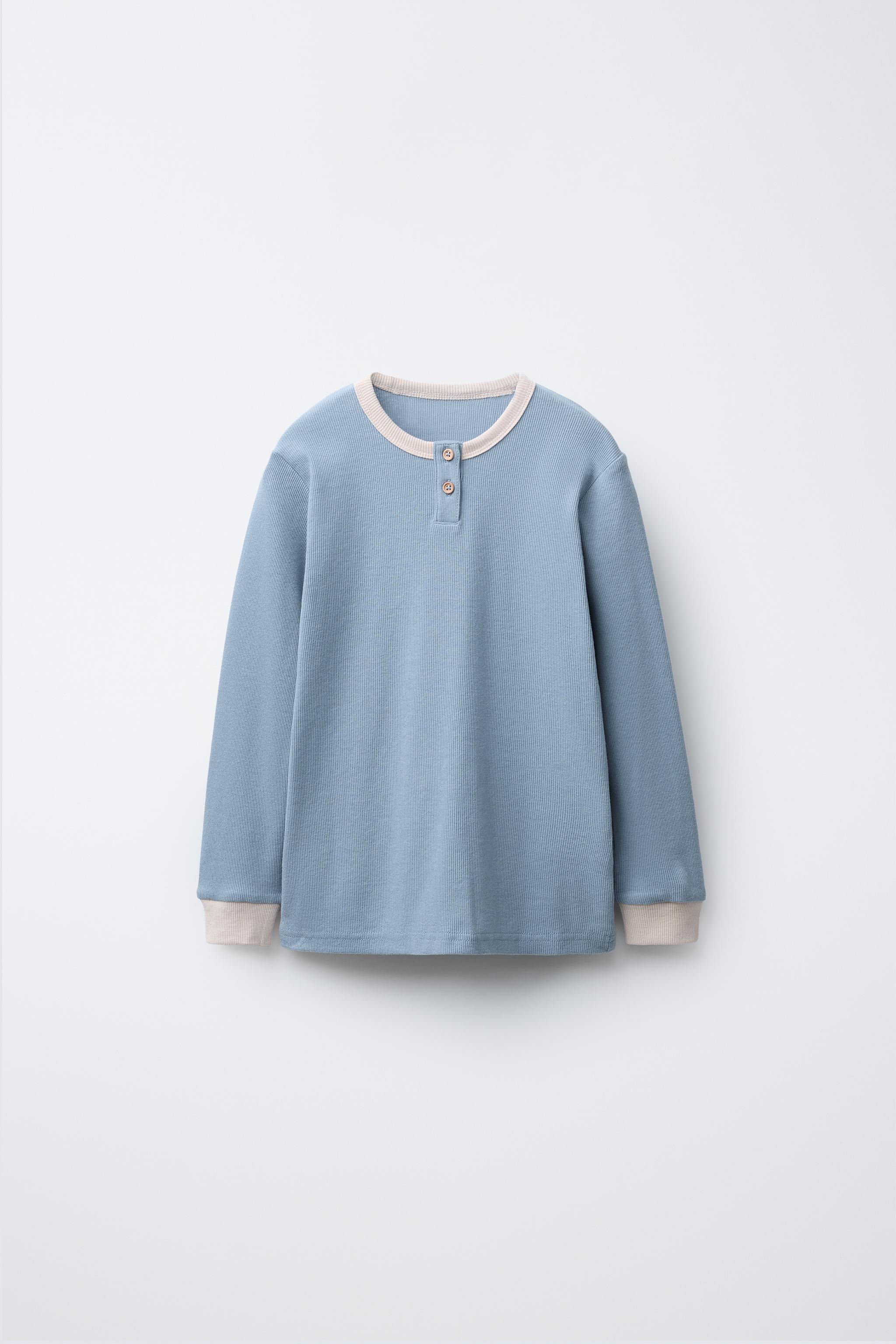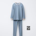 ست پیژامه دو تکه. تیشرت آستین بلند با یقه گرد و مچدار. دکمهدار از قسمت بالا. شلوار با کمر کشی و مچدار.