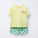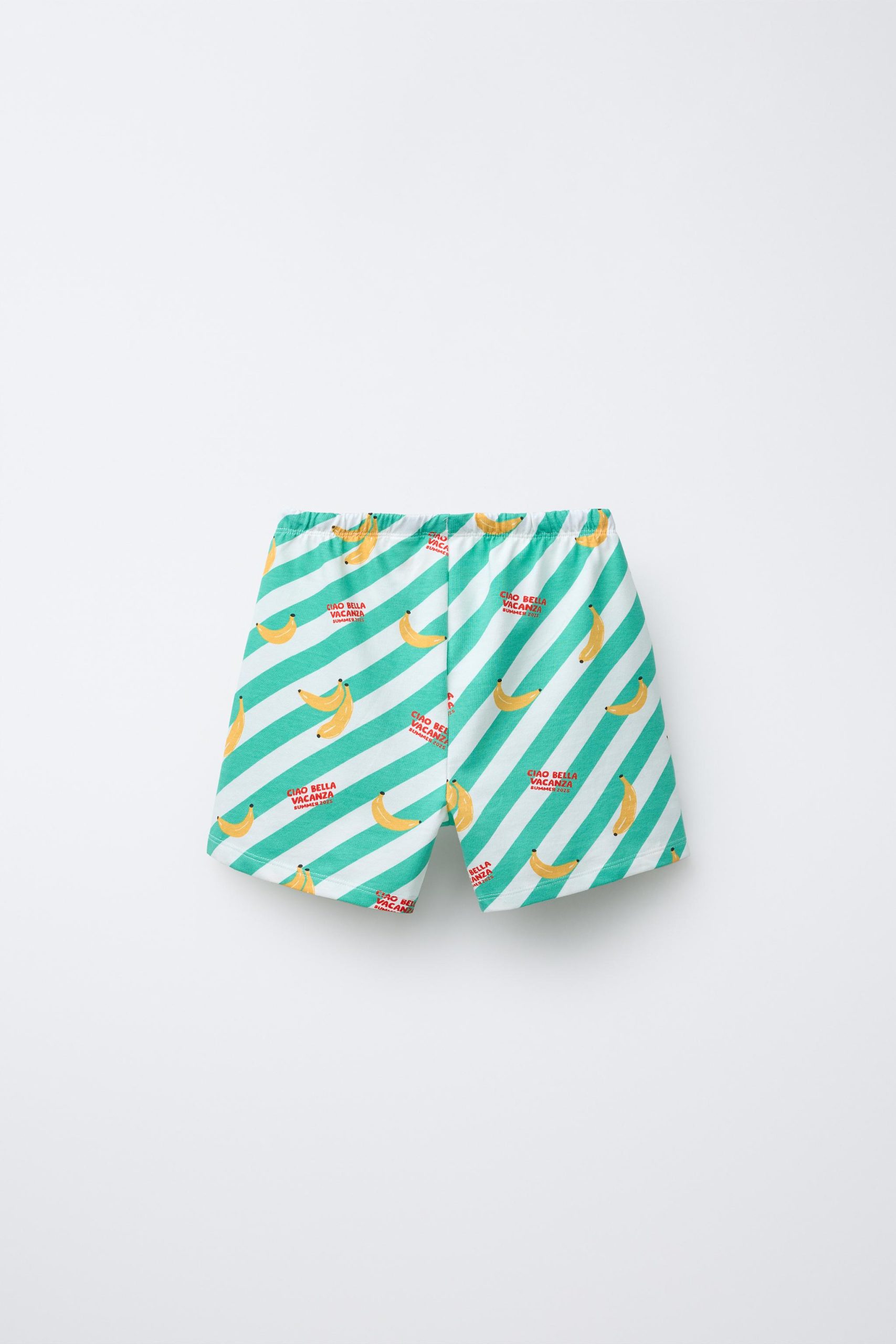 - İki parçalı pijama takımı. Bisiklet yaka ve kısa kollu tişört. Elastik belli ve ön tarafı ayarlanabilir bağcıklı bermuda. Muz desenli.