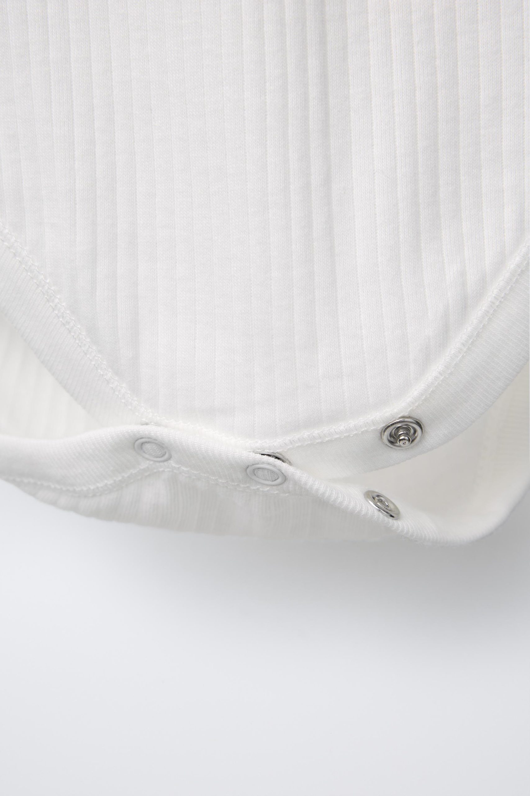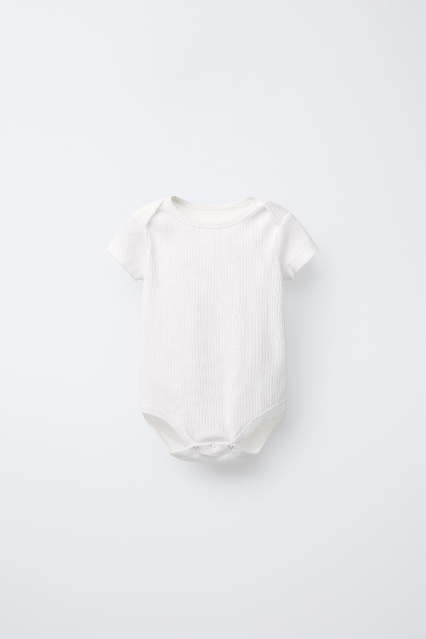 بسته بادی سهتایی با دکمههای چسبی از پایین، آستین کوتاه و یقه گرد.