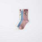 - Üçlü uzun çorap paketi. Çiçek baskılı ve dalgalı bitişli.