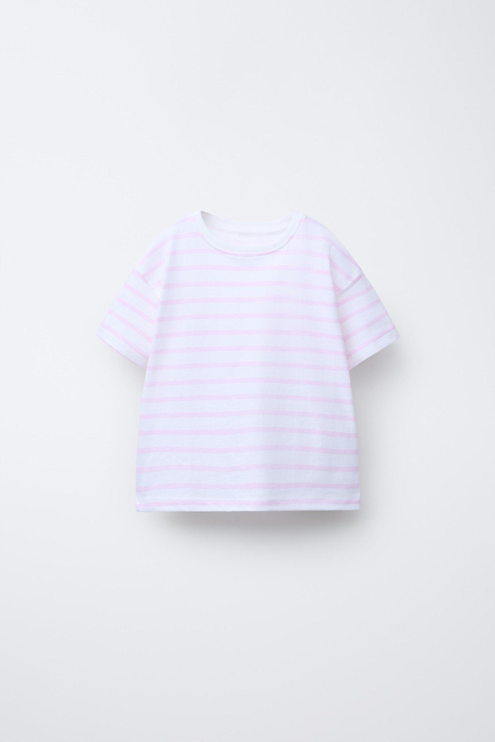 بسته سهتایی تیشرت یقه گرد و کوتاهدامن. شامل طرحهای راهراه و ساده. از پارچه ۱۰۰% پنبهای ساخته شده است.
