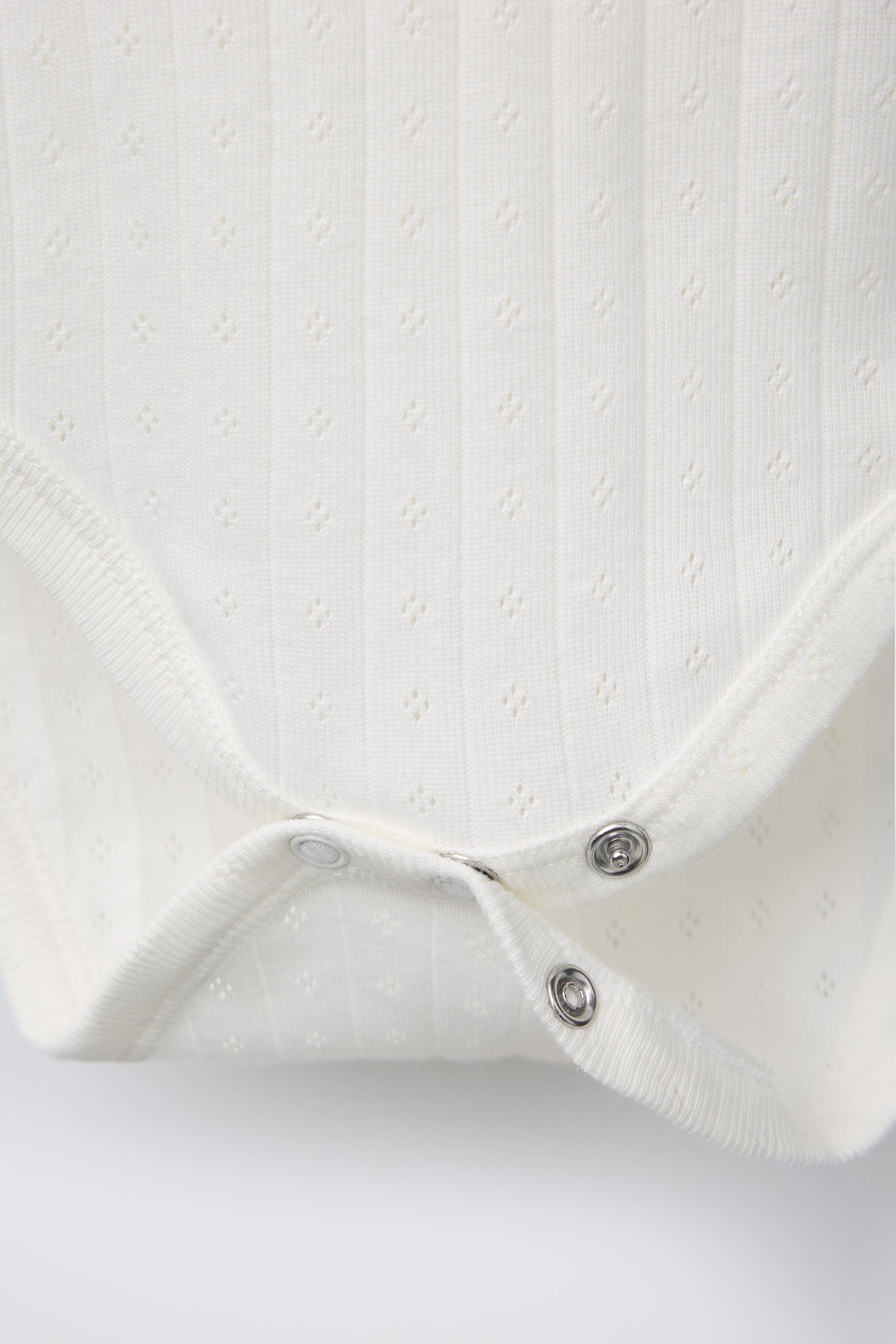 بسته بادی سهتایی با یقه دوچرخهای و آستین کوتاه. قسمت پایین دارای بستهشدن با دکمه است.