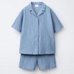 - İki parçalı pijama takımı. Gömlek yakalı ve kısa kollu gömlek. Önden düğmeli. Elastik belli bermuda şort. Kareli desenli.