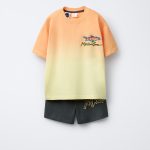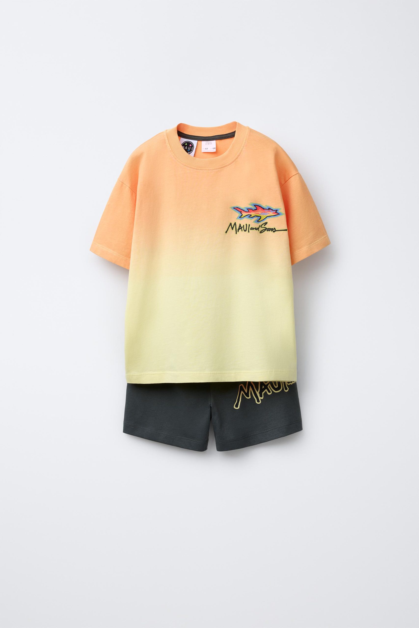 ست پیژامه دو تکه. تی‌شرت یقه گرد و آستین کوتاه. چاپ MAUI & SONS ® در جلو و پشت. شلوار برمودا با کمر کشی. پارچه ۱۰۰% پنبه‌ای.