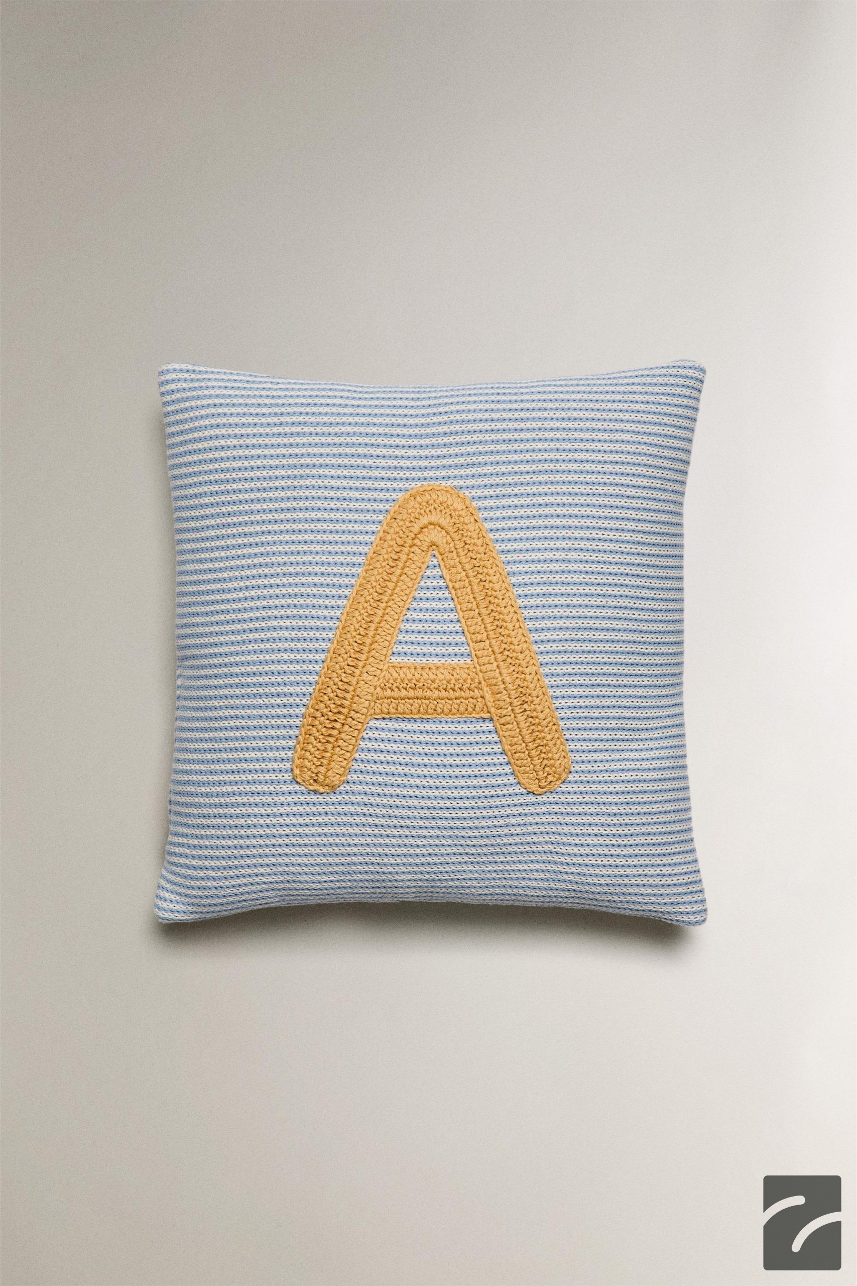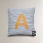 کوسن کودک با طراحی راهراه از جنس پنبه و با حرف “A” در وسط آن، شامل پرکننده میباشد.