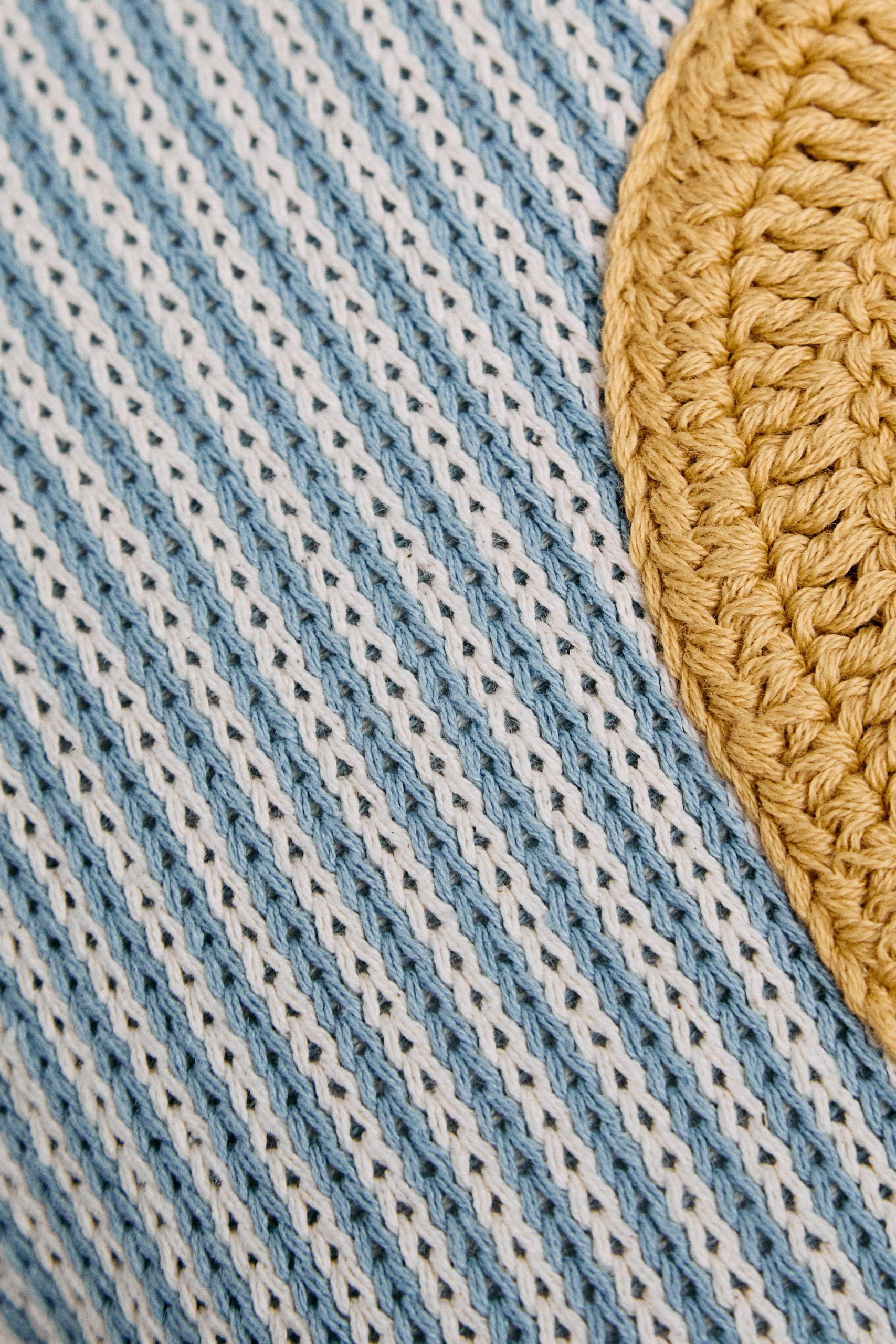 - Pamuklu, çizgili tasarımlı ve ortasında “A” harfi işlemeli çocuk kırlenti. Dolgu dahildir.