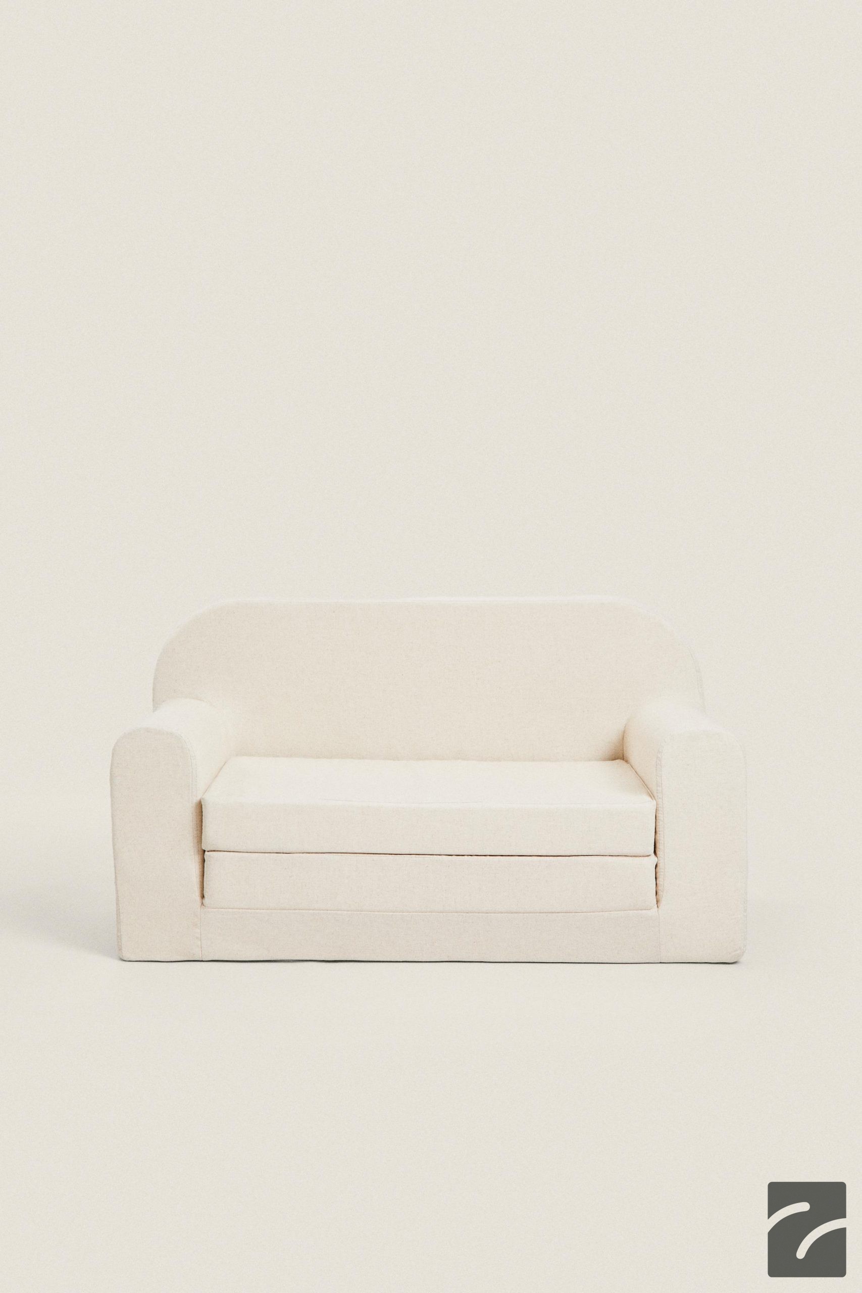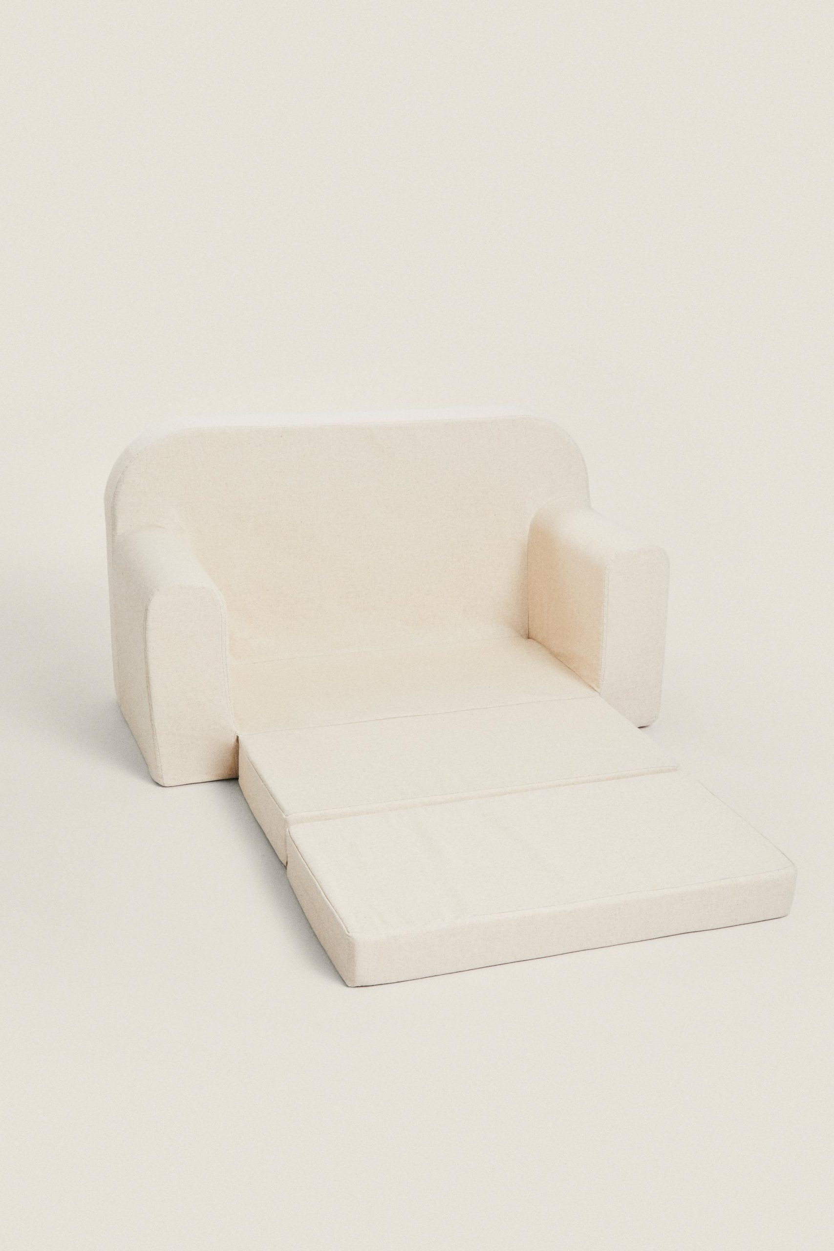 مبل بازشونده با دستگیره برای کودکان، با لبههای گرد و رنگ ساده از جنس پنبه.