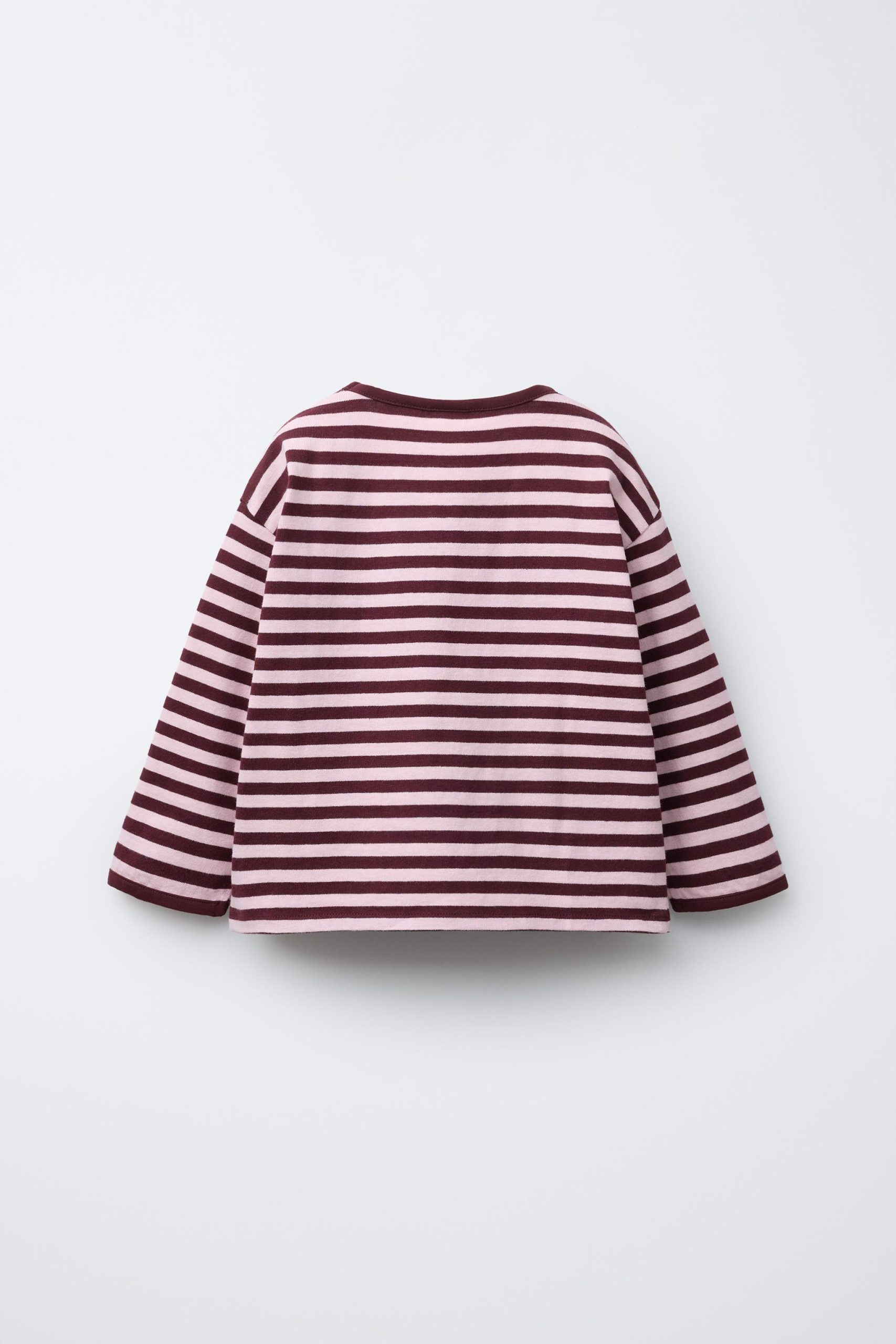 تیشرت آستینبلند یقهدوچرخهای با جزئیات رنگی متضاد و زنده. دارای وصلهای به شکل قلب در ناحیه سینه.