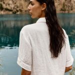 - Sivri yaka ve kısa kollu gömlek. Ön yama cepli. Ton sür ton ajur detaylı. Patletli önü gizli düğme kapamalı.