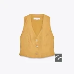 تاپ بدون آستین V yaka. جلو آن با دکمه‌های طلایی تزئین شده است.