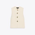 تاپ بدون آستین با یقه بیسیکلت. جلوی آن با دکمههای طلایی بسته میشود.