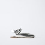 Metalik bitişli, arkası açık babet tipi ayakkabı. Yan tarafında yapışkan bantlı kapatma. Esnek iç taban. Kauçuk taban.