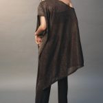پلیور تولید شده از نخ فلزی. یقه نامتقارن و لبه پایینی.