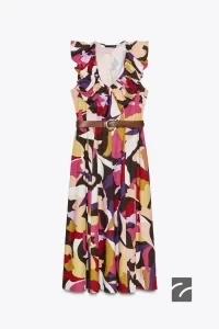 تاپ نازک یقه V با بندهای باریک از برند زارا (زنانه) - M, زرشکی (05536045)