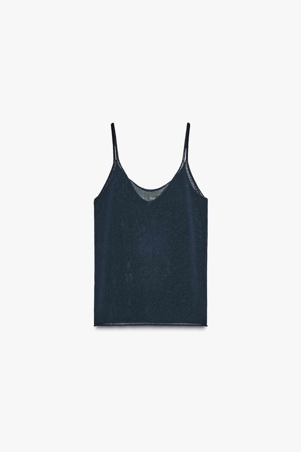تاپ نازک یقه V با بندهای باریک از برند زارا (زنانه) - M, سورمه ای (05536045)