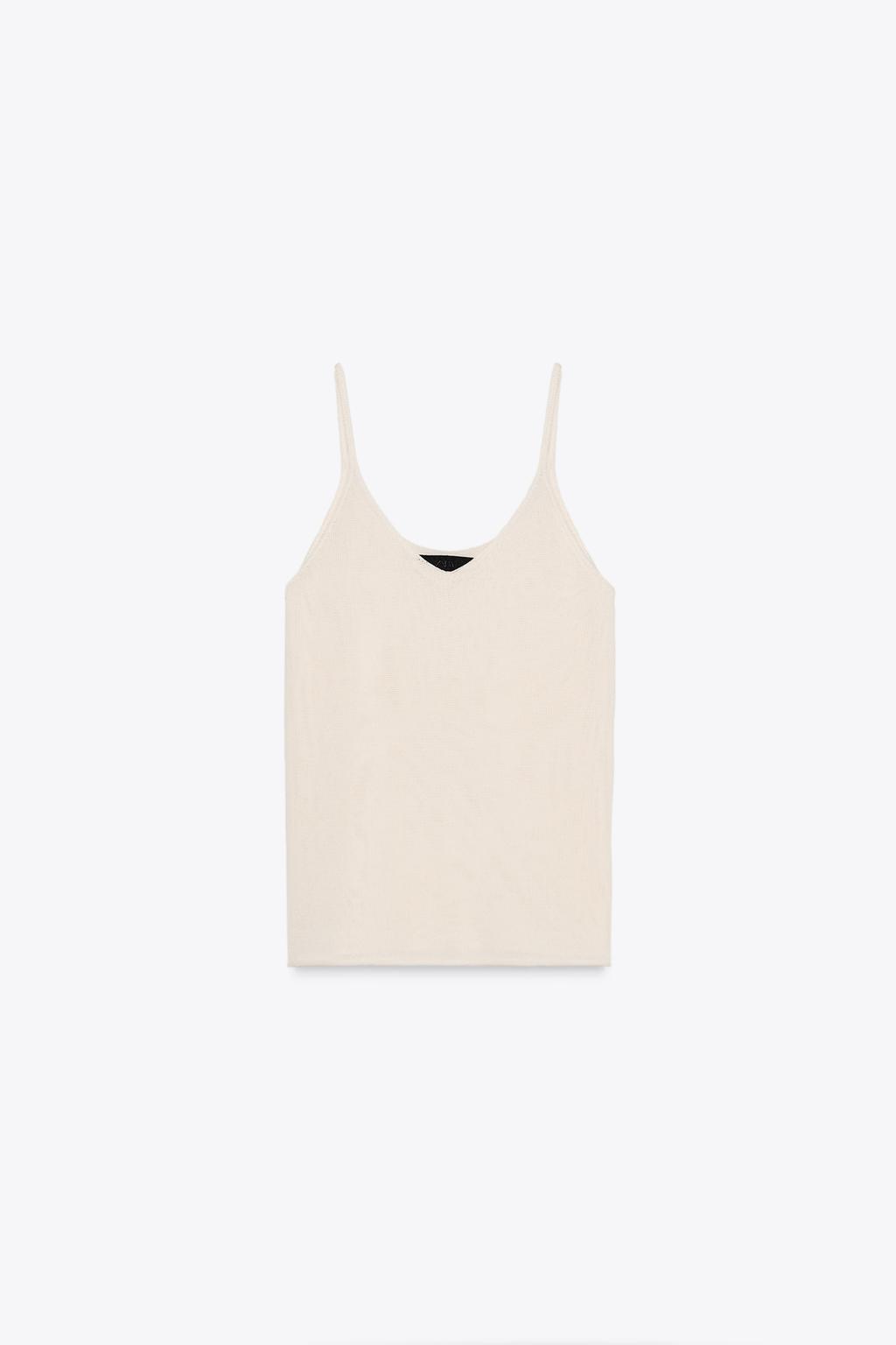 تاپ نازک یقه V با بندهای باریک از برند زارا (زنانه) - S, کرم (05536045)