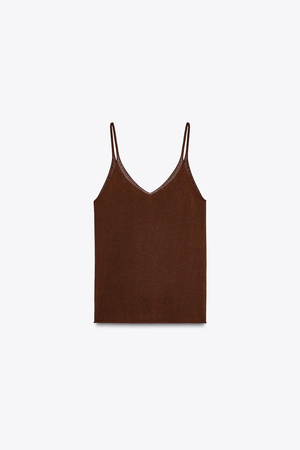 تاپ نازک یقه V با بندهای باریک از برند زارا (زنانه) - S, کنفی (05536045)
