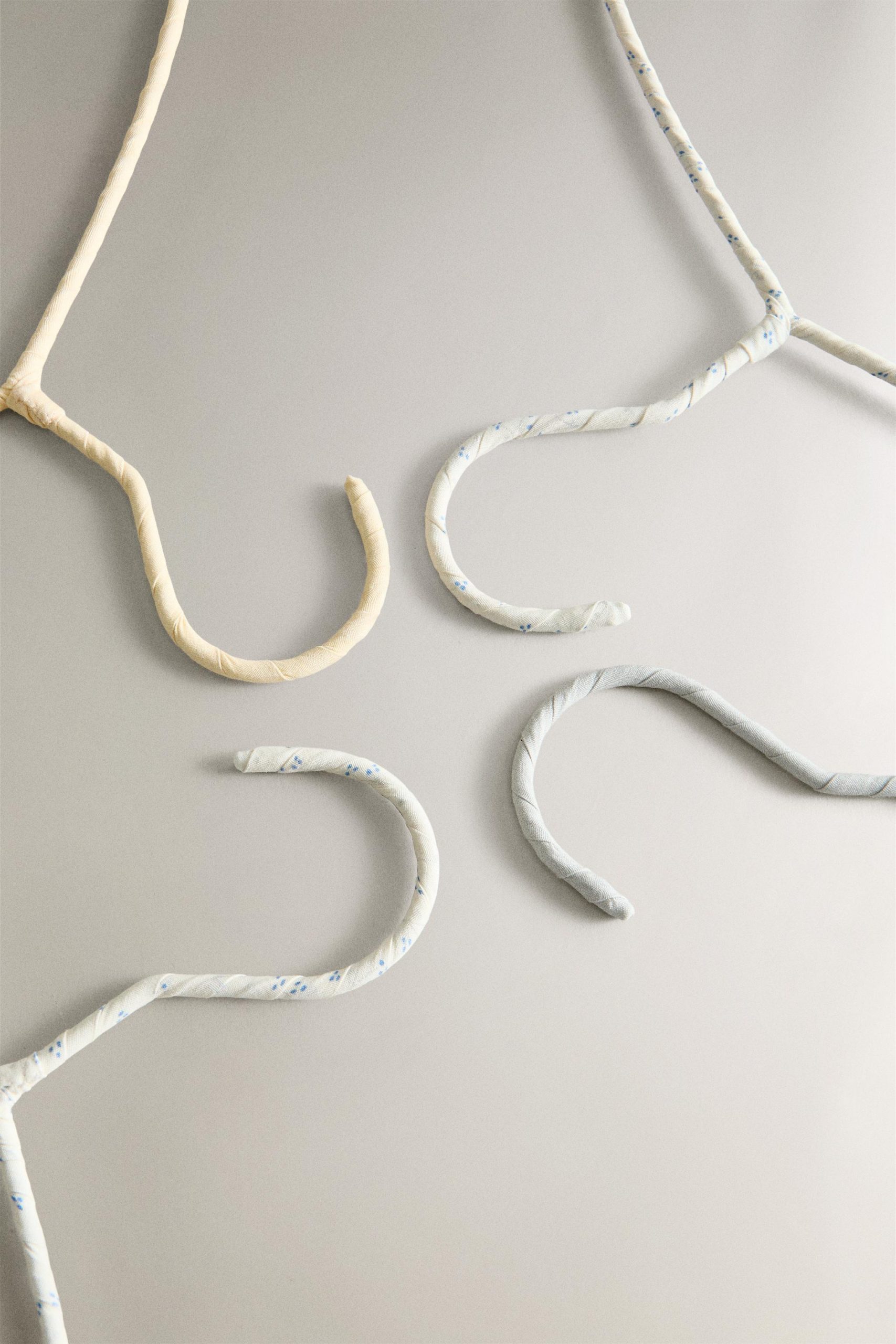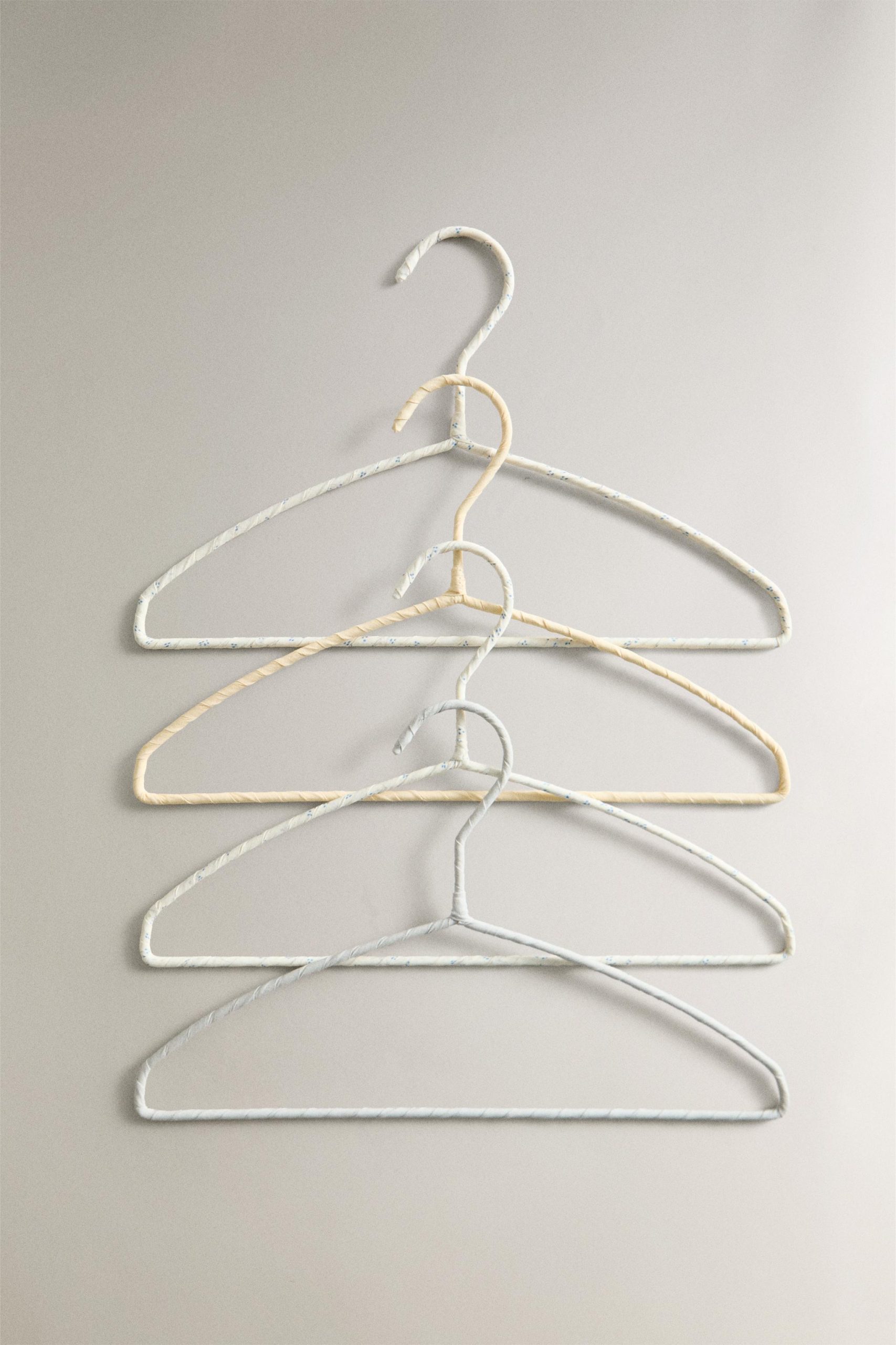 Desenli kumaş kaplamalı bebek kıyafetleri için metal askı. 4’lü set olarak satılır.