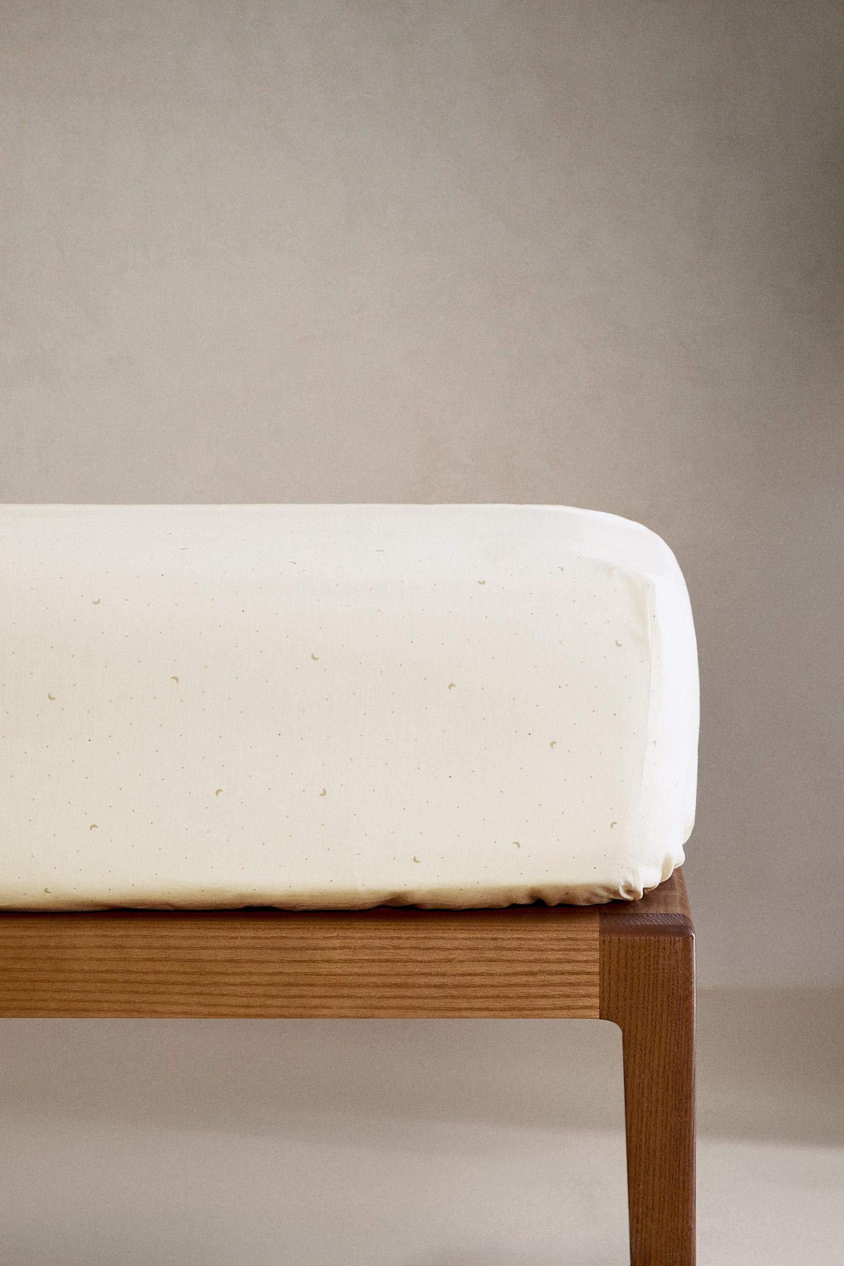 روکش زیر تشک کودک با طرح ماه و ستاره، از جنس پنبه با 200 نخ.