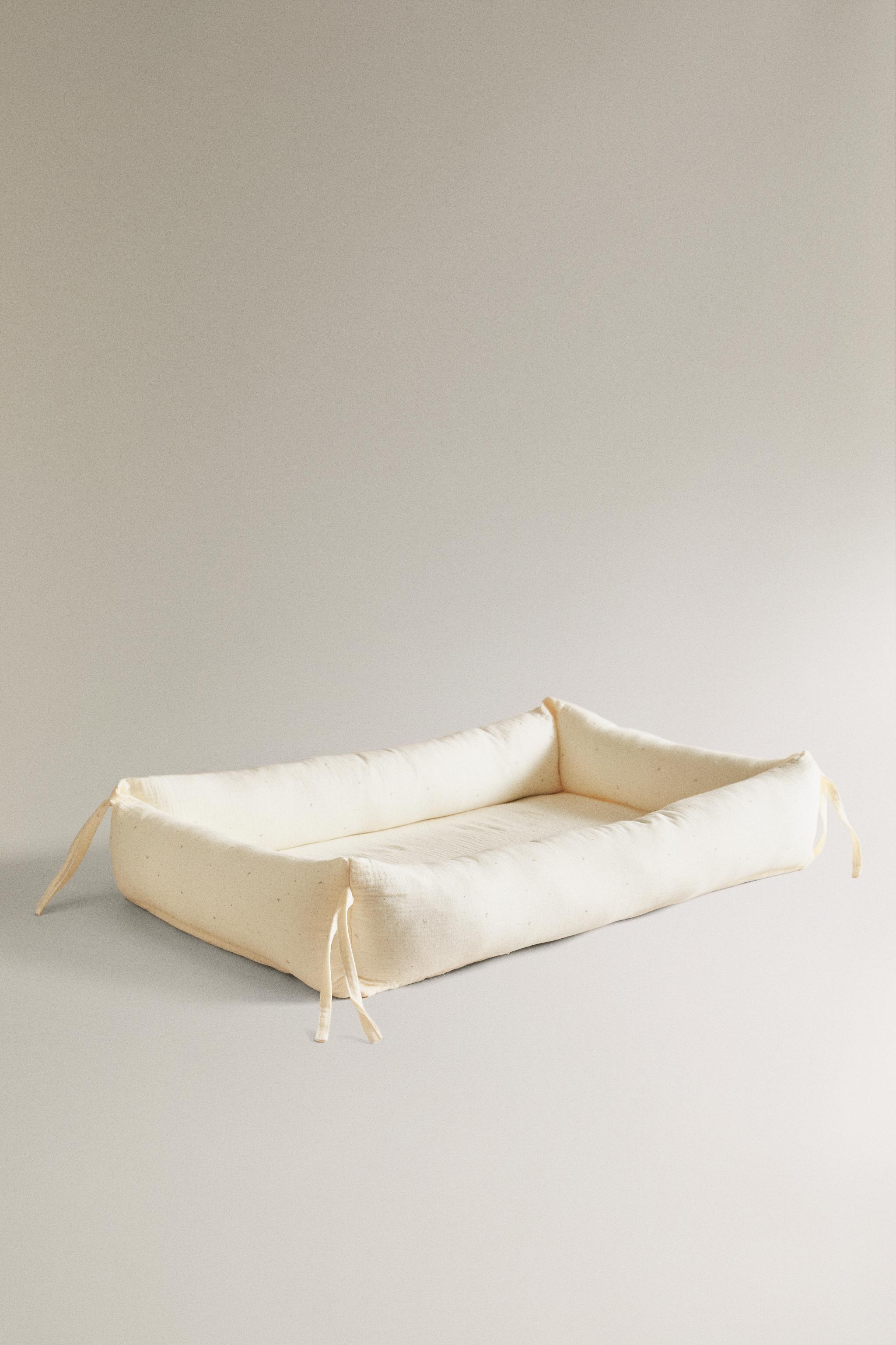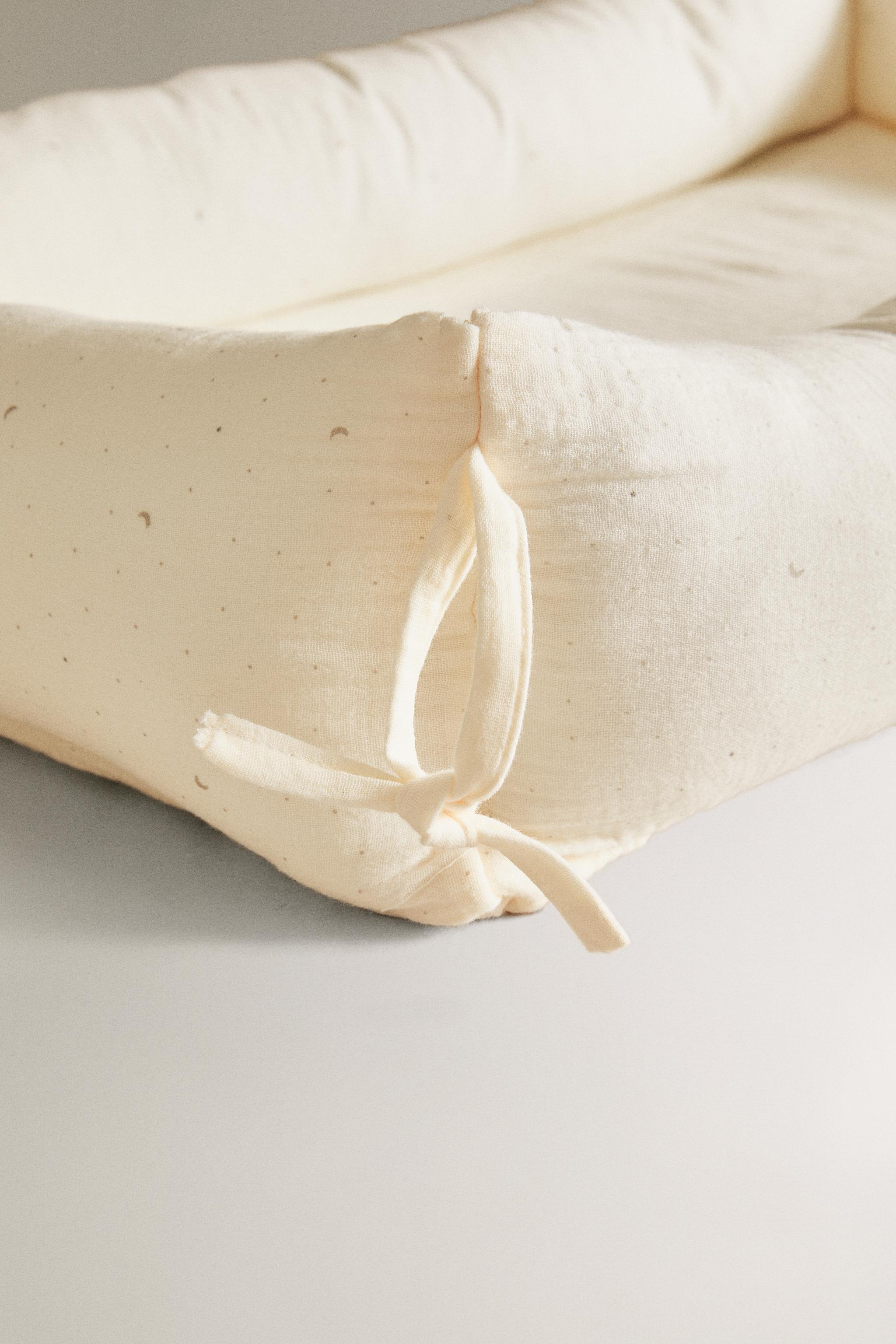 Çocuklar için dikdörtgen dolgulu yuva beşiği. Ay desenli pamuklu kumaştan üretilmiştir. Dolgu dahildir.