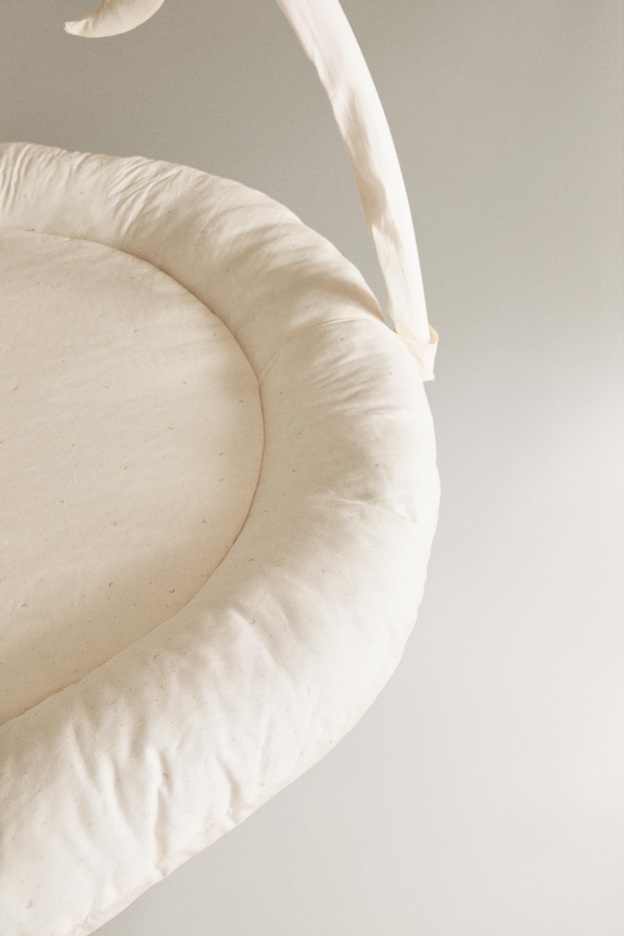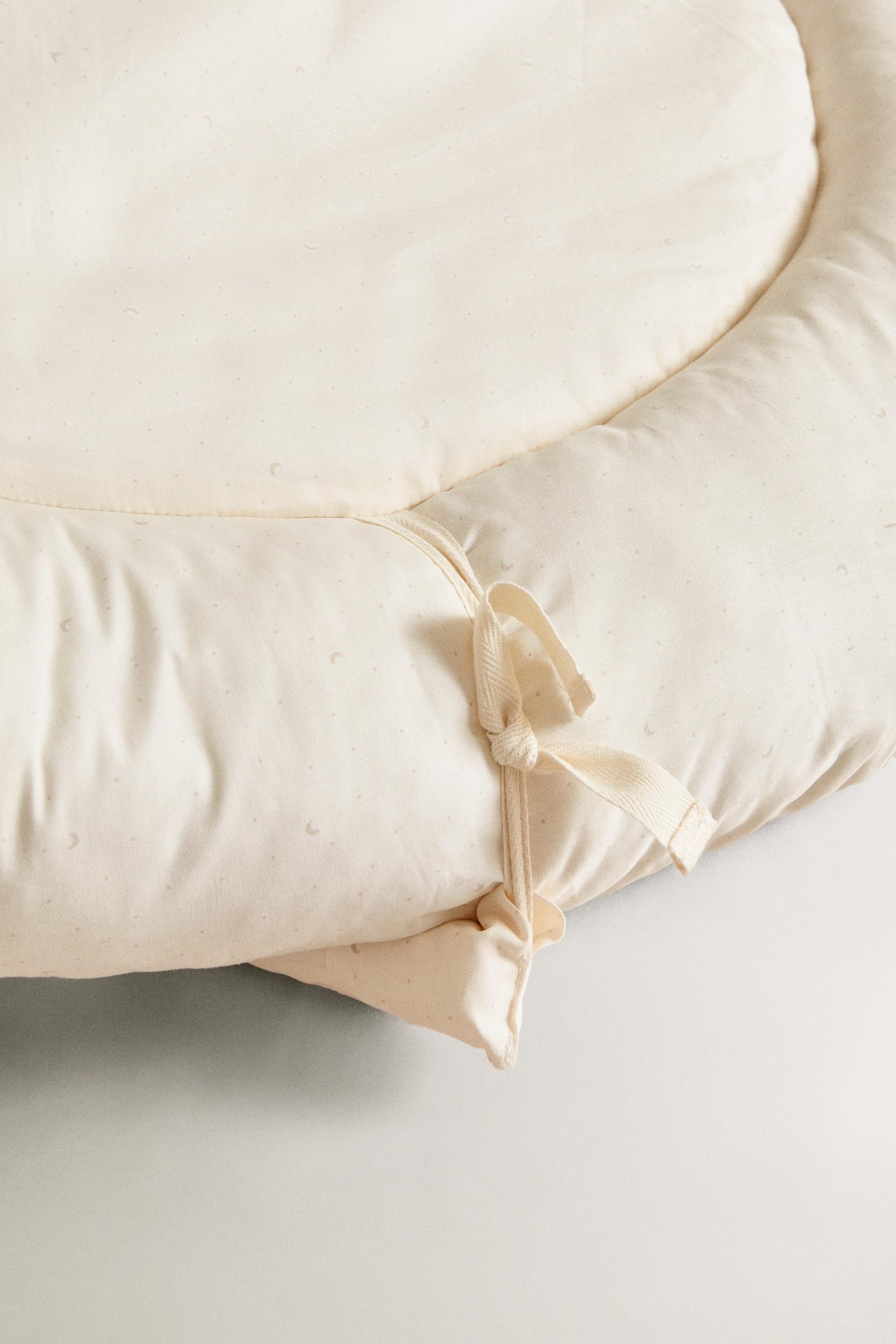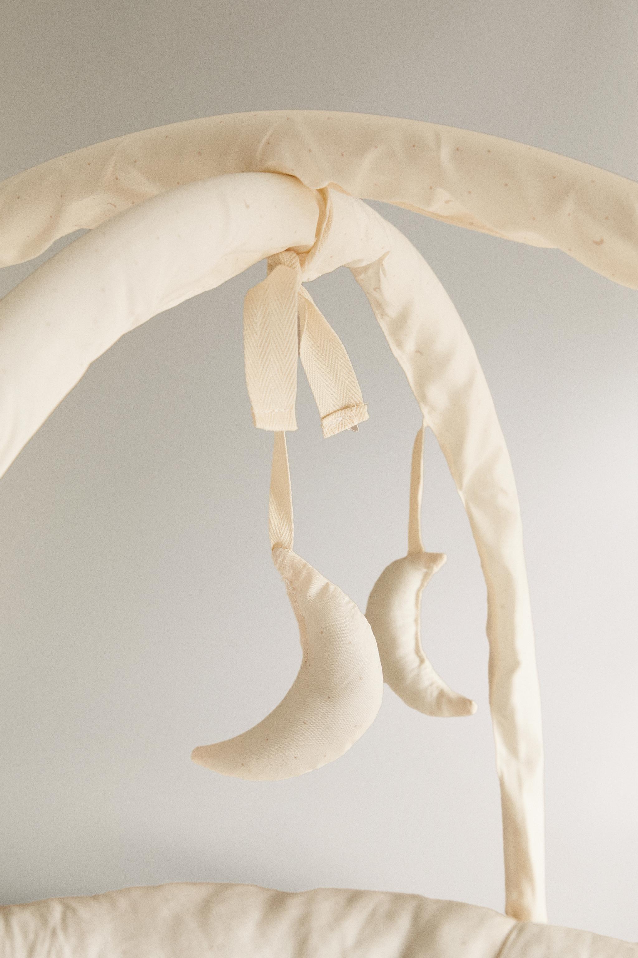 • Sallanan yıldızlı ve ay tasarımlı, %100 pamuk bebek oyun alanı.