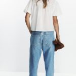 - Bisiklet yaka, V yaka ve kısa balon kollu bluz. Önü büzgülü ve fırfırlı detaylı. Ton sür ton ajurlu ve delikli işlemeli. Önden düğme kapamalı.