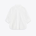 - Pamuk ipliğinden üretilmiş gömlek. Yakalı ve manşetli 3/4 balon kollu. Önü pilili detaylı. Önü patletli gizli düğme iliklemeli.