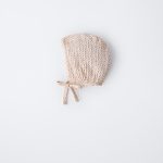 Önde ayarlanabilir bağcıklı bambu başlık. Ön kısımda dantel detayları ve çiçek baskısı.
