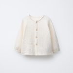 پیراهن آستین بلند با یقه گرد و دکمهدار در جلو.