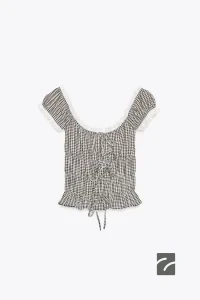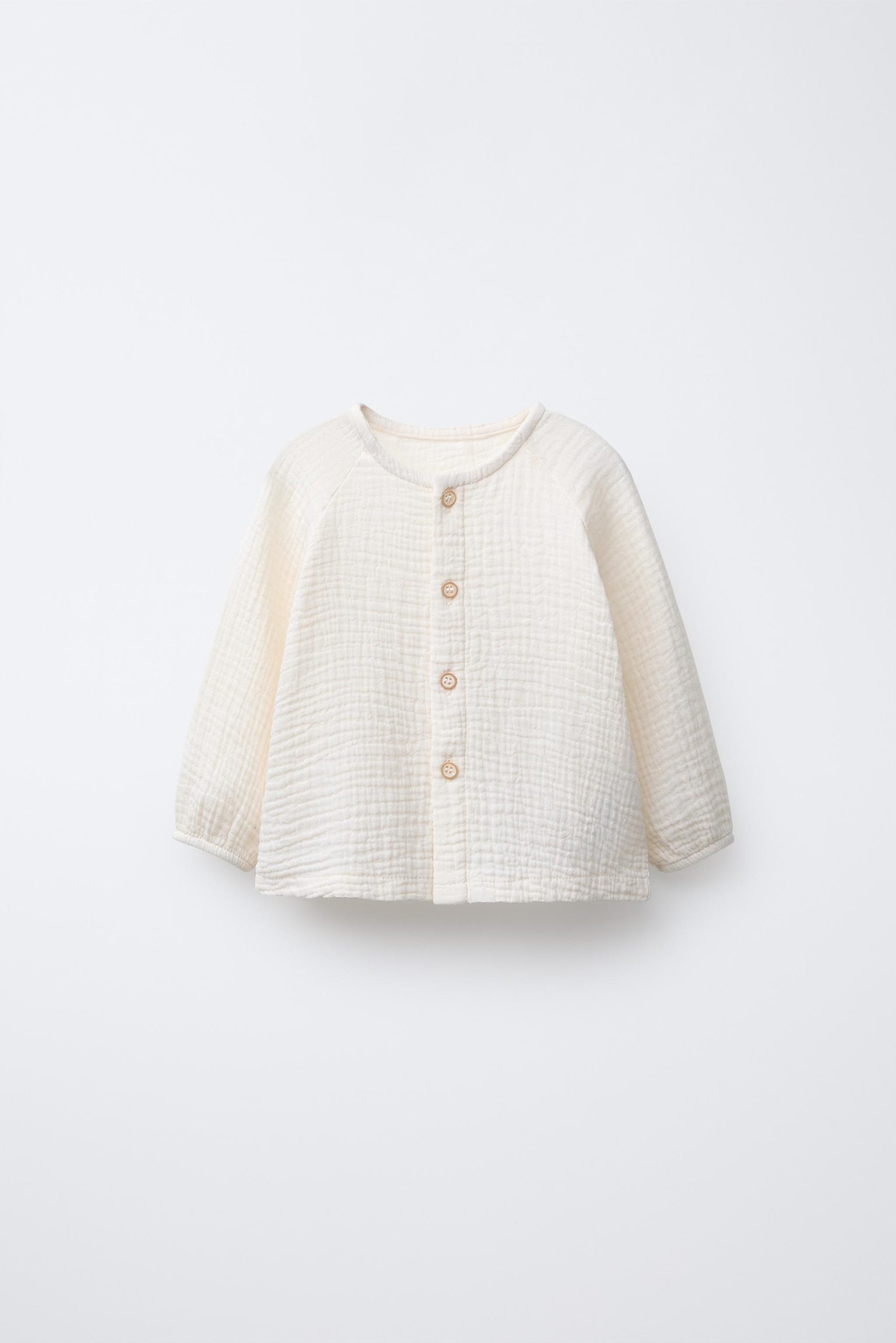Lastikli uzun kollu, bisiklet yaka gömlek. Önü düğme iliklemeli.