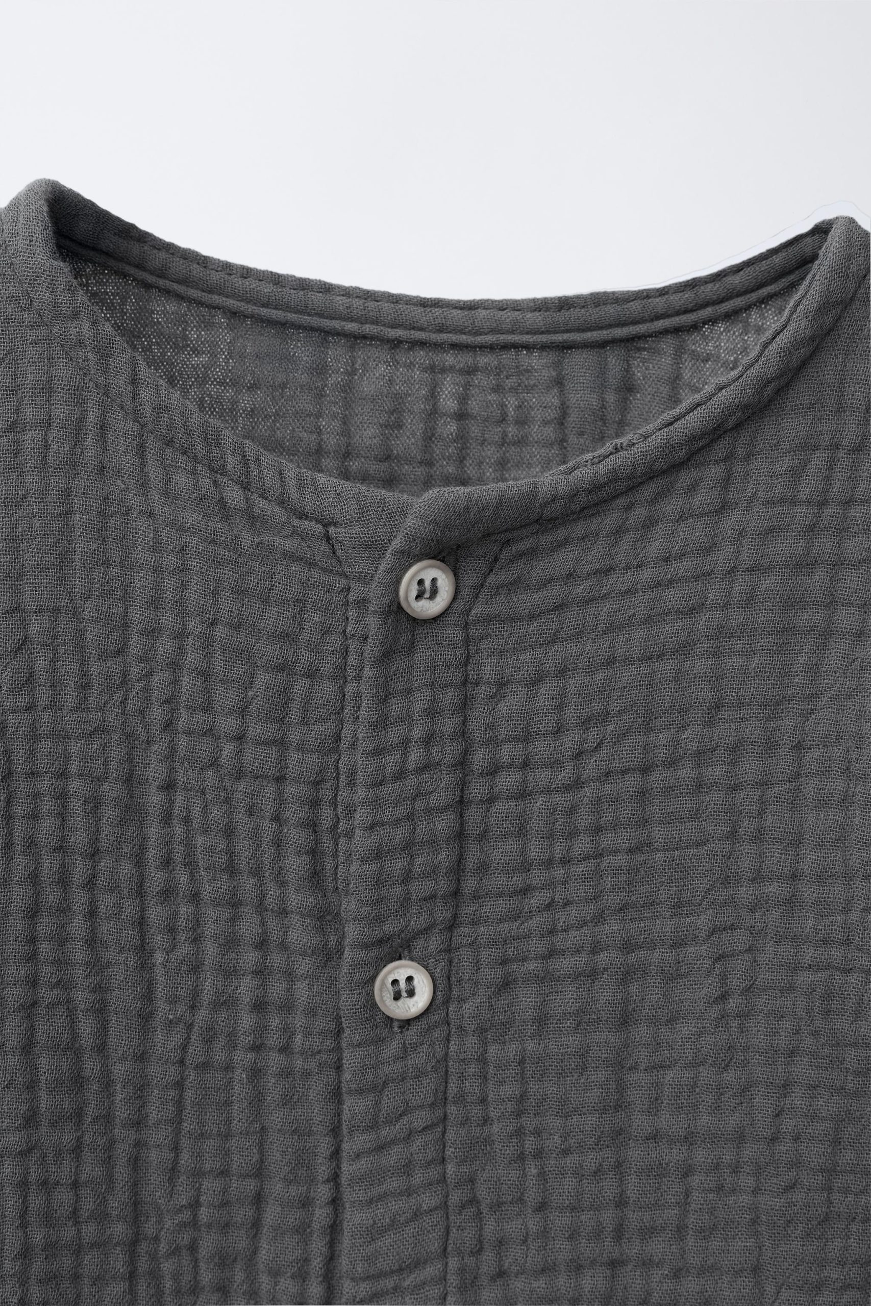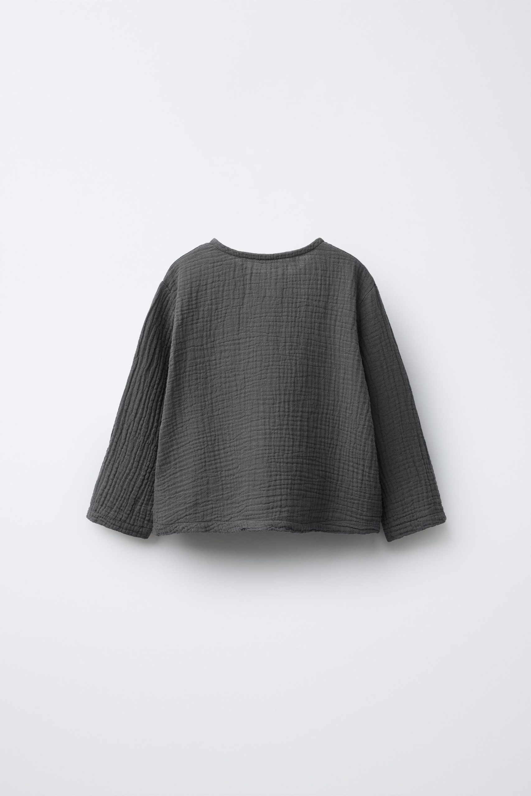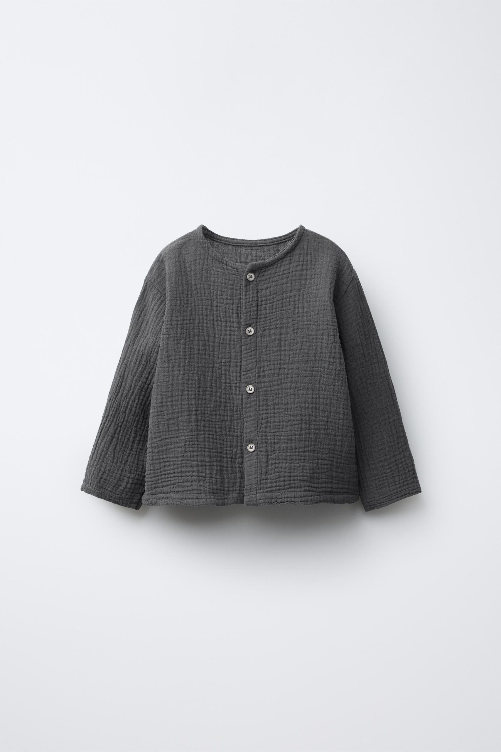 - Bisiklet yaka, uzun kollu bambu gömlek. Önden düğme kapamalı.