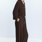 Geniş kollu, V yakalı, bisiklet yaka dökümlü bluz. Önden düğmeli.