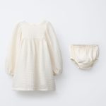 • Lastikli uzun kollu, bisiklet yaka elbise. Arkası düğme kapamalı. Elastik belli külotlu.