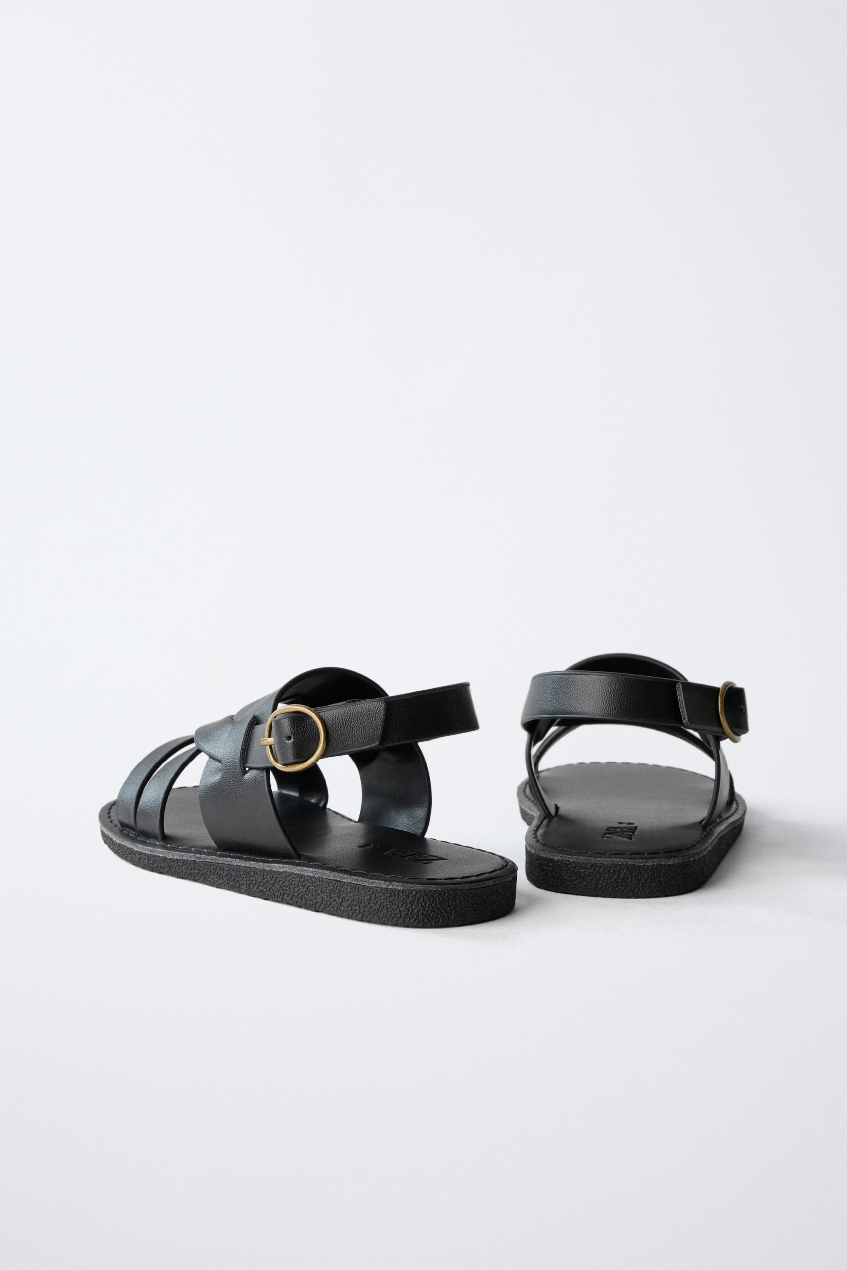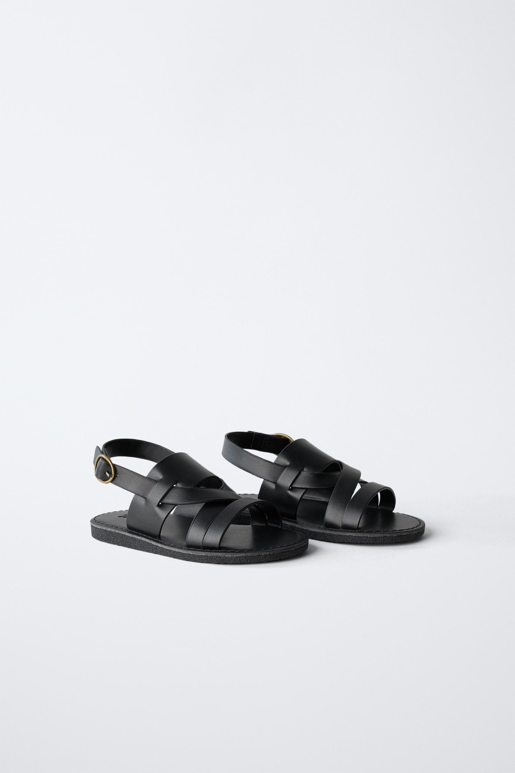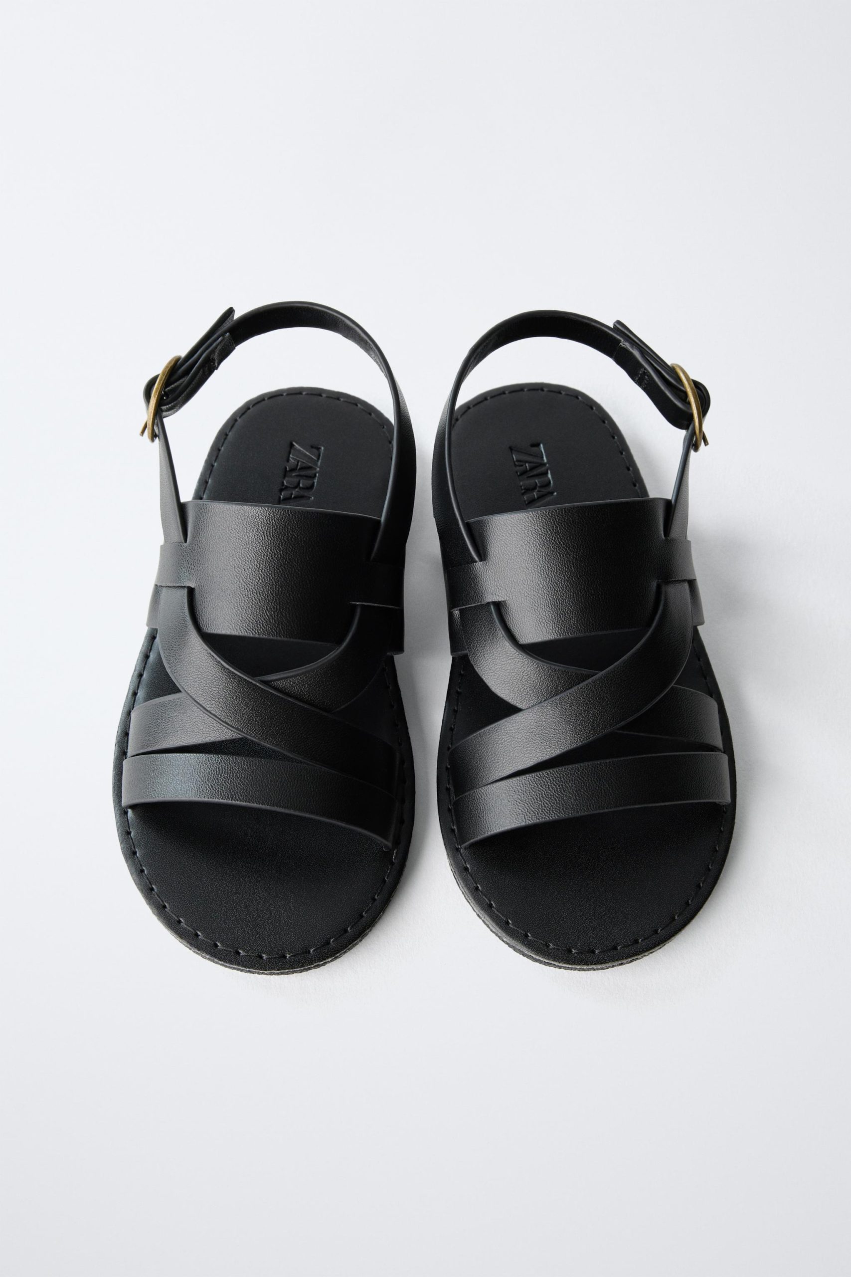 - Ayağın üzerinde çapraz detaylı bantlı sandalet. Yan toka ile kapatılır. Kauçuk taban.