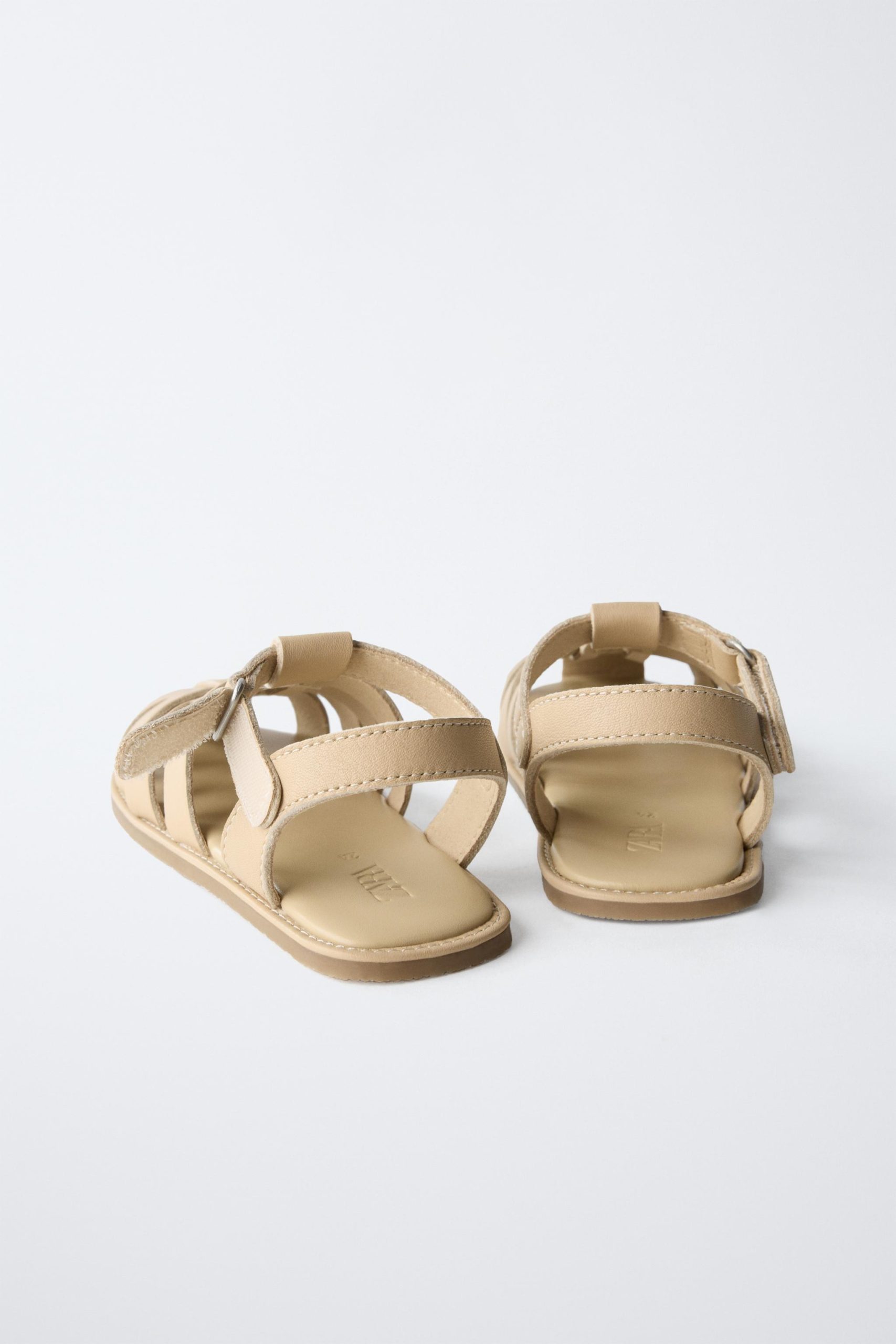 مدل صندل با بند و قفل از چرم 100% گاوی. بسته شدن از سمت کناری با بند چسبی. زیره از جنس لاستیک.