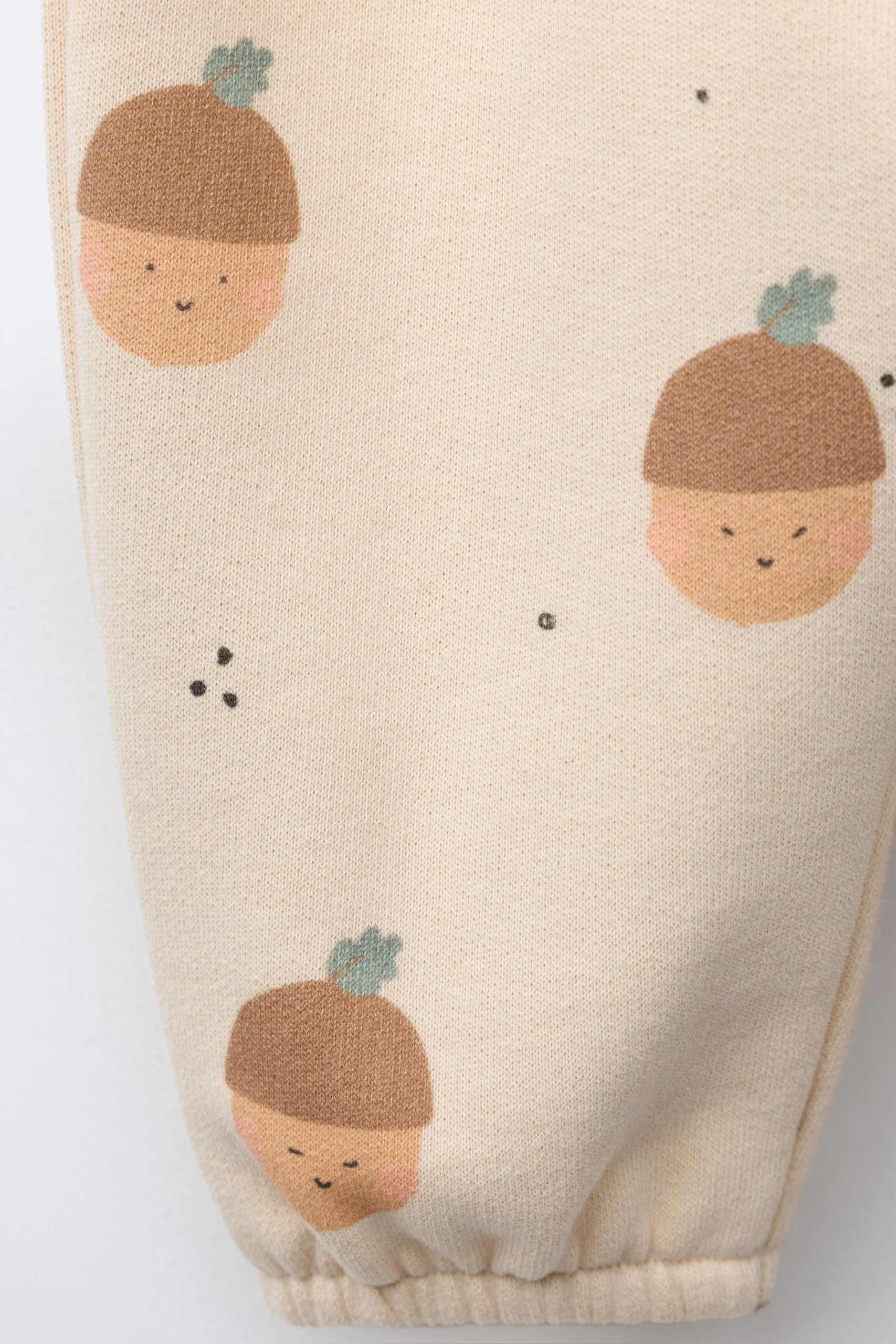 Elastik belli pantolon. Paçaları elastik manşetli. Tamamı baskılı. %100 pamuklu kumaş.