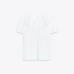 Ton sür ton nakışlı bebe yaka ve kısa kollu t-shirt. Göğüste yama cep. Arkası açık ve düğmeli.