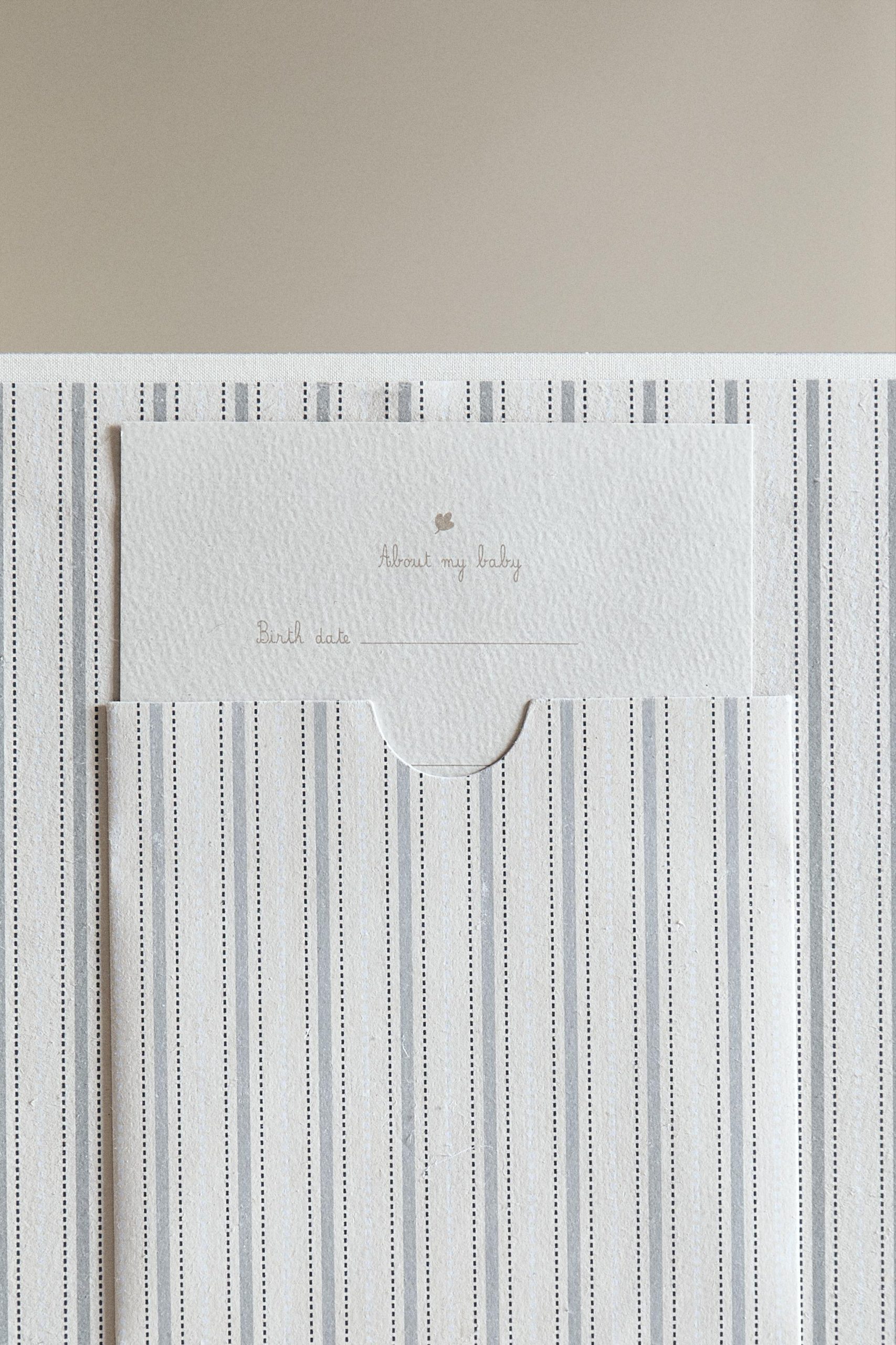 • – Ayak ve el izinin ekleneceği iki klasör ve ilk çorapları ve favori emziği saklamak için iki pamuklu torba içeren üçüncü çekmece.