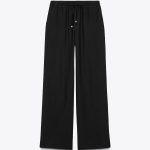 - Büzgü iple ayarlanabilir elastik yüksek bel, ön cepli, geniş paça pantolon.