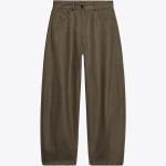 شلوار تولید شده از %19 الیاف کتان. دارای کمر متوسط و پل کمری. پنج جیب. با جزئیات بافت هفت تیری. پاچههای گشاد. بسته شدن از جلو با زیپ و دکمه.