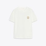 تیشرت با وزن متوسط و فیت معمولی، یقه گرد و طول معمولی با آستینهای کوتاه. این تیشرت از الیاف پنبهای تولید شده و دارای جزئیات بروش فلزی در قسمت جلو است.