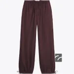 شلوار تولید شده از 100% کتان. دارای کمربند قابل تنظیم با بند کشی و بسیار الاستیک. دارای جیب جلو. پاچه‌های براق و لبه‌های قابل تنظیم با بند کشی.
