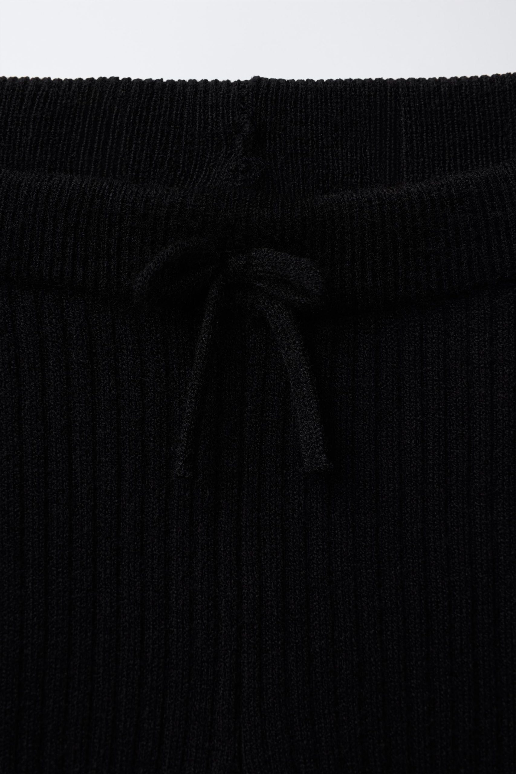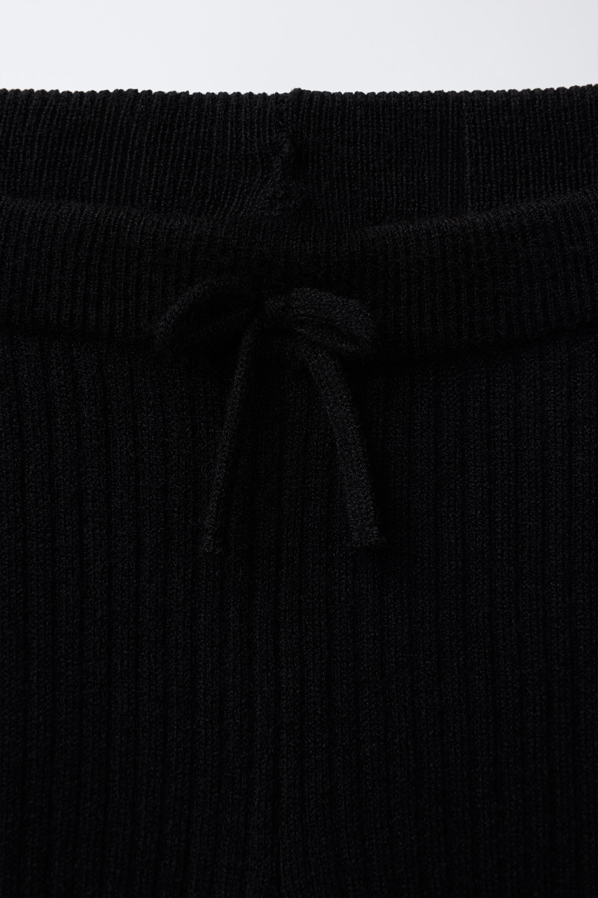- Elastik belli, çan paça örgü tayt. Önü fiyonk aplikeli.