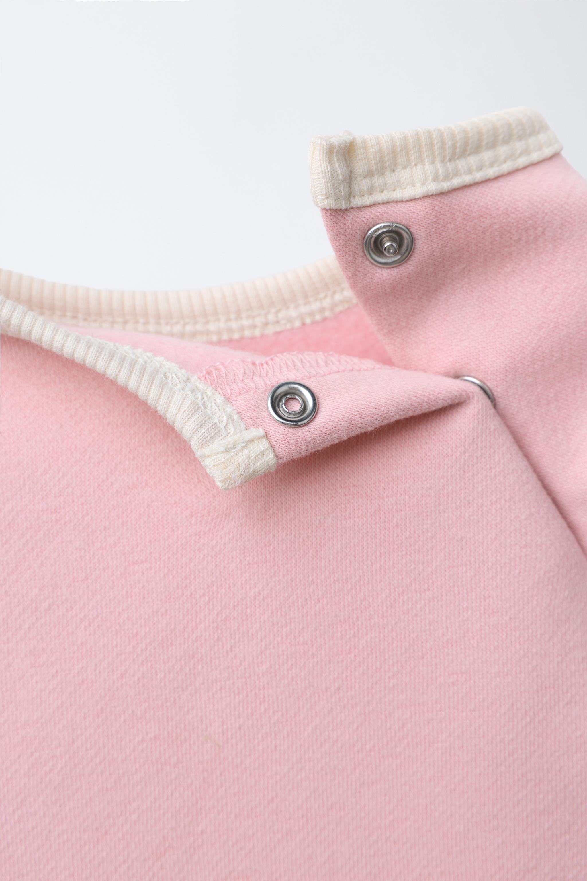 Manşetli uzun kollu, bisiklet yaka tulum. Alt kısmı ve sırtı çıtçıtlı. Göğüs kısmı şekil baskılı. Kontrast renkli canlı detay. %68 pamuklu kumaş.